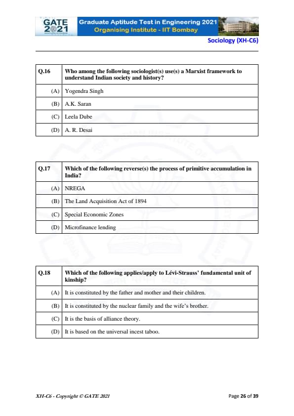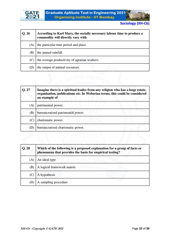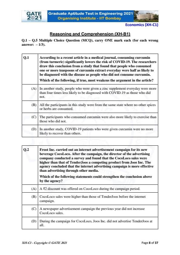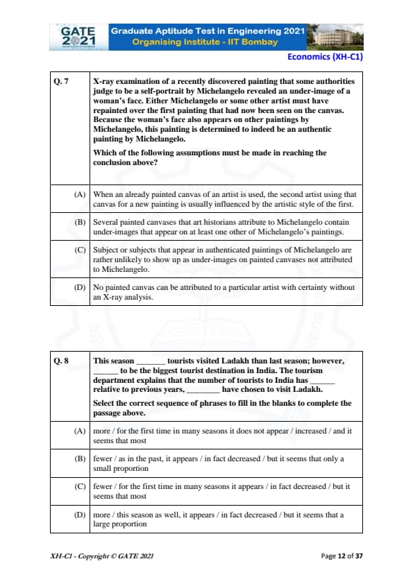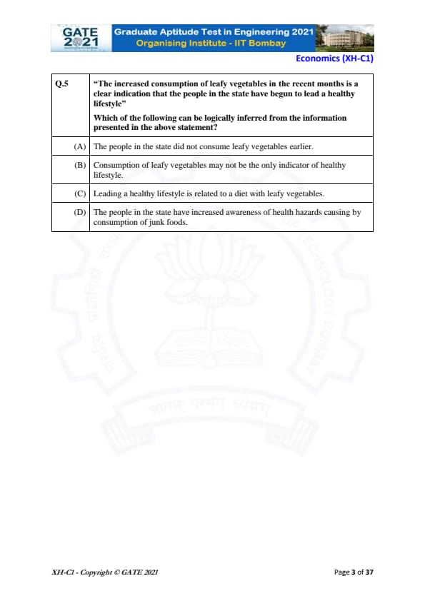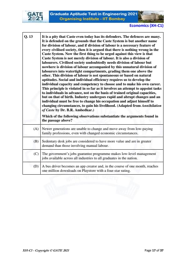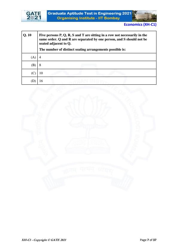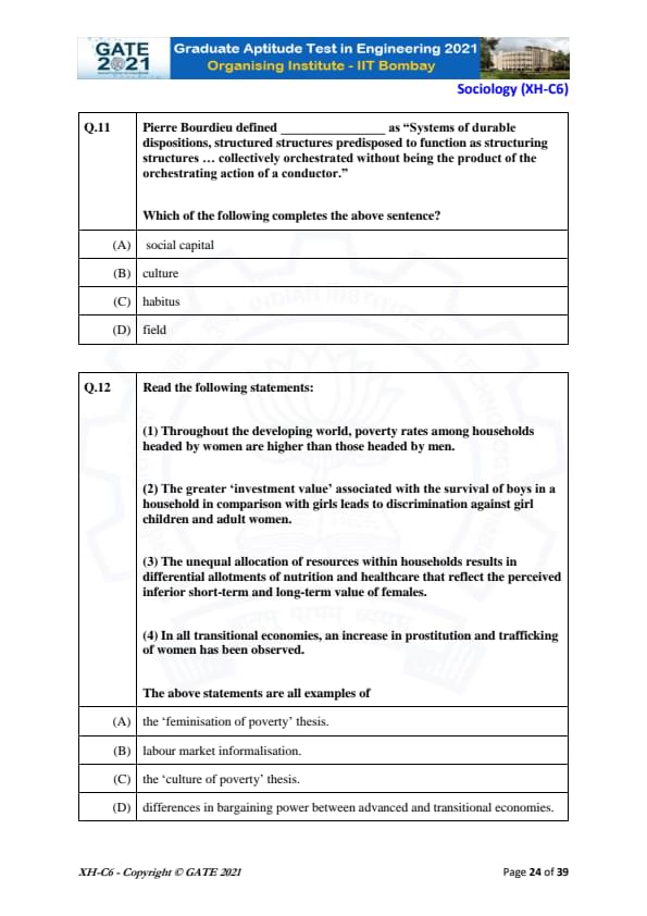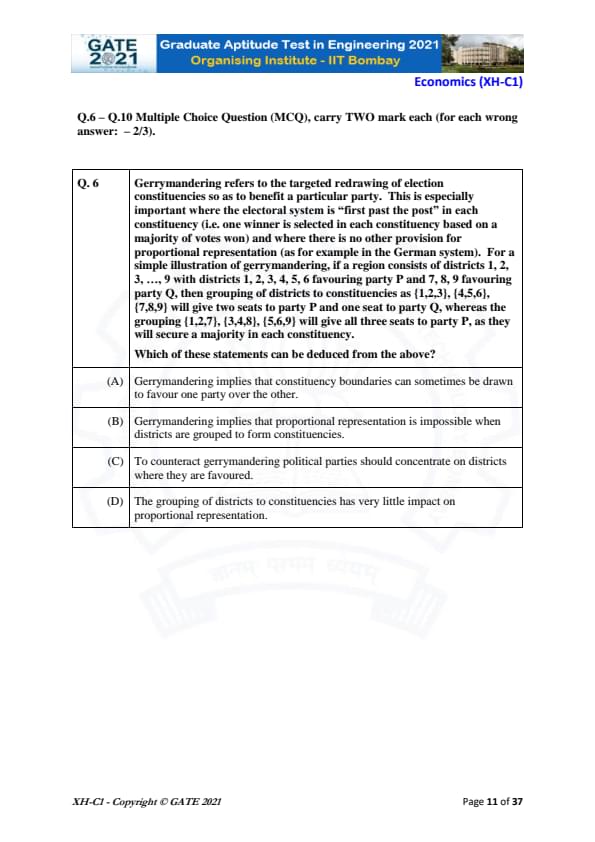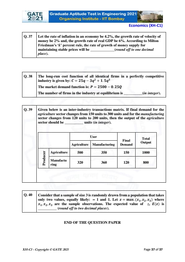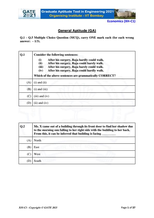 | GATE 2021 Humanities and Social Sciences (XH), Economics (XH-C1) Question Paper | Check Solutions |