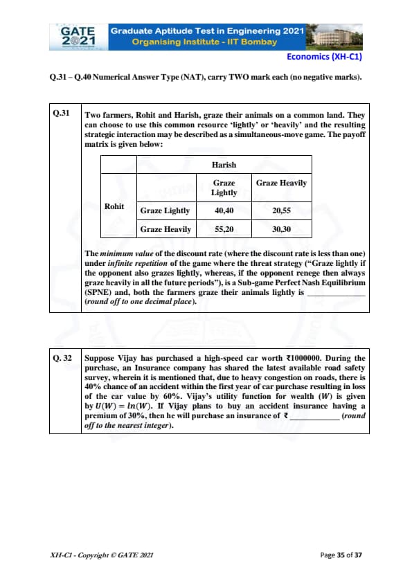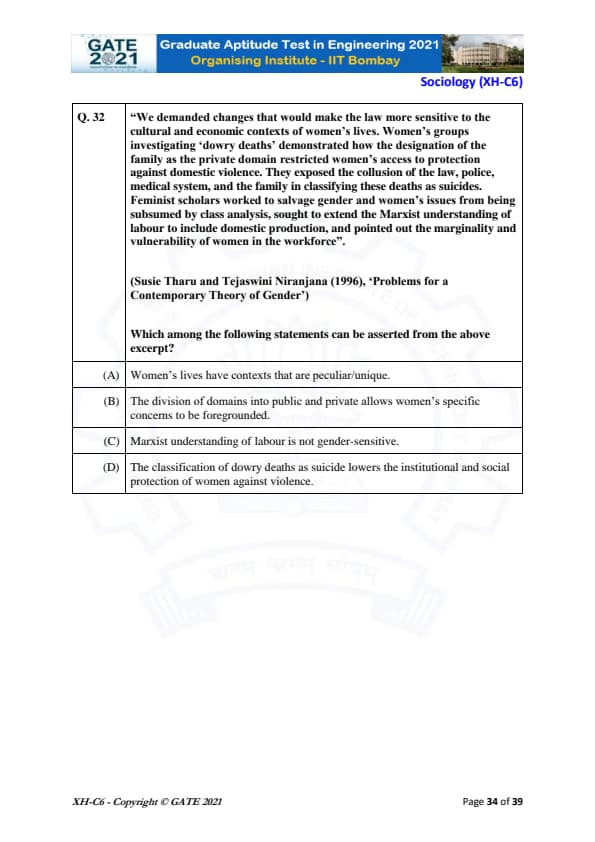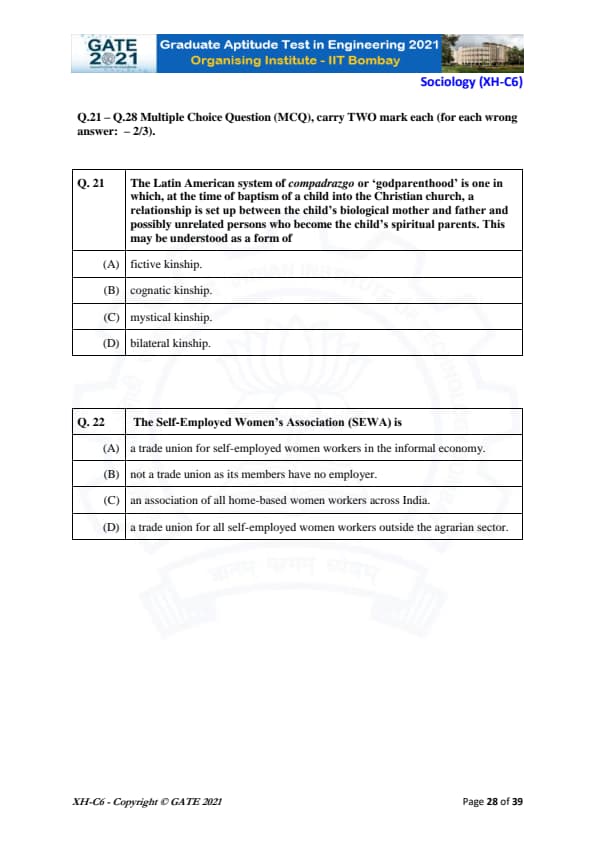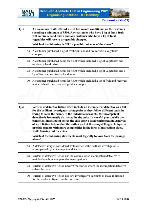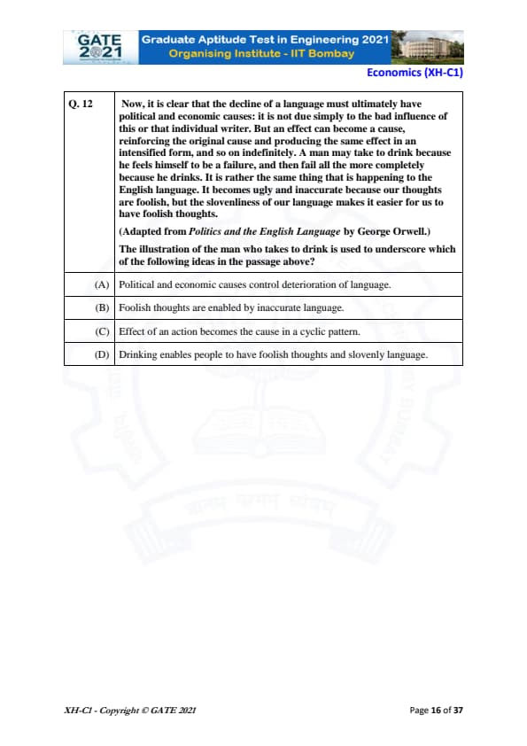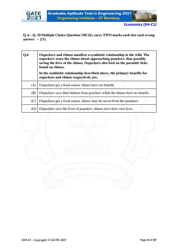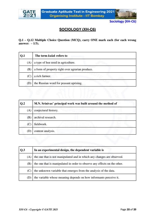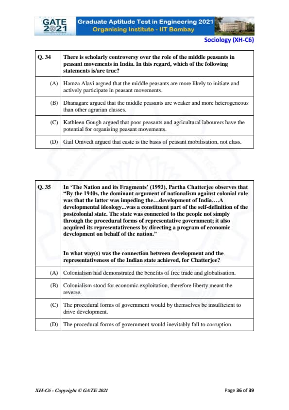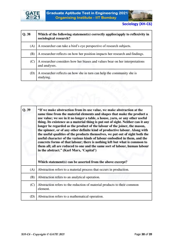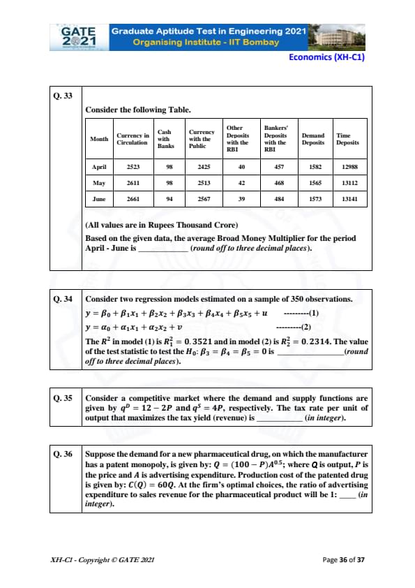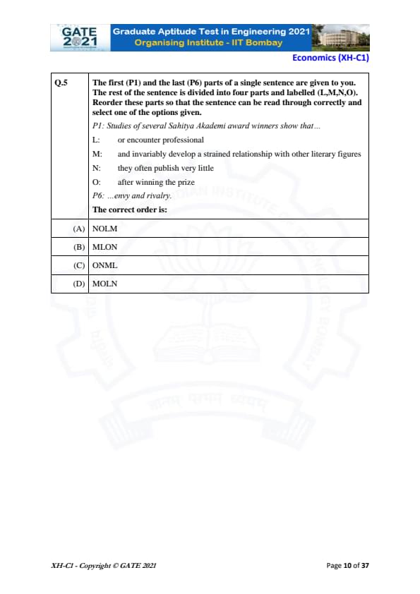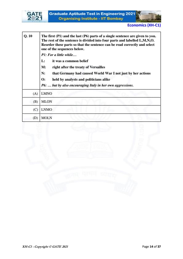 | GATE 2021 Humanities and Social Sciences (XH), Economics (XH-C1) Question Paper | Check Solutions |