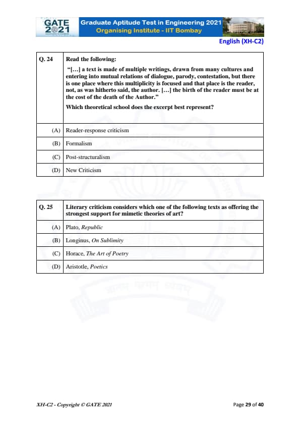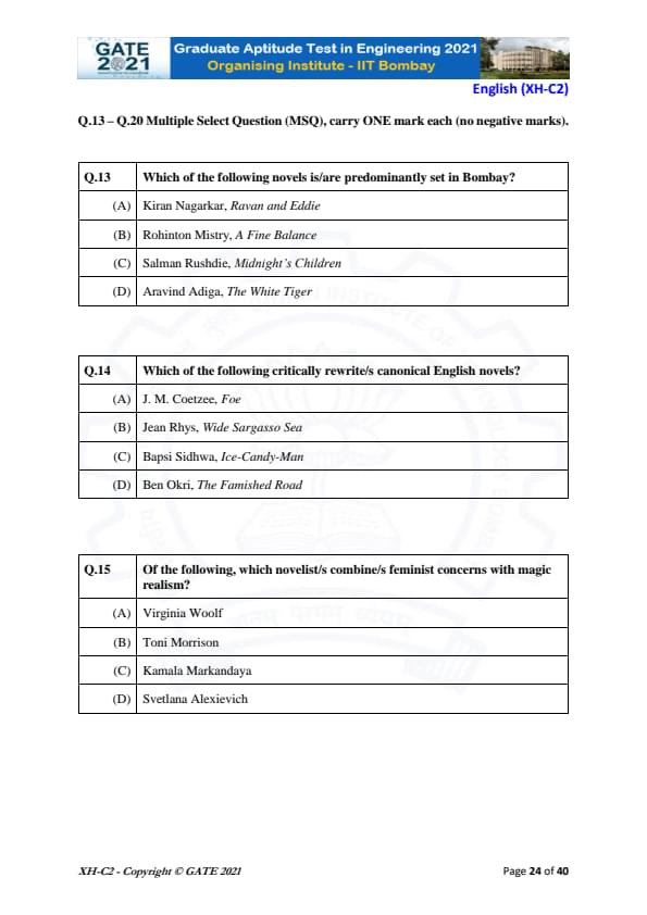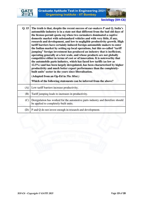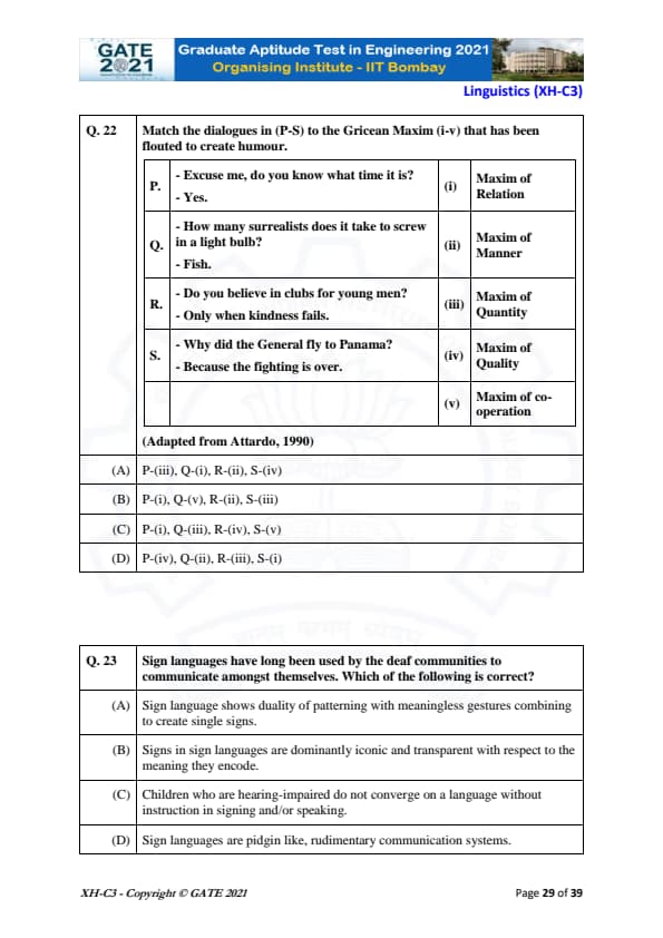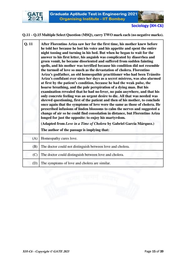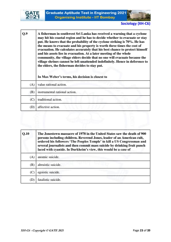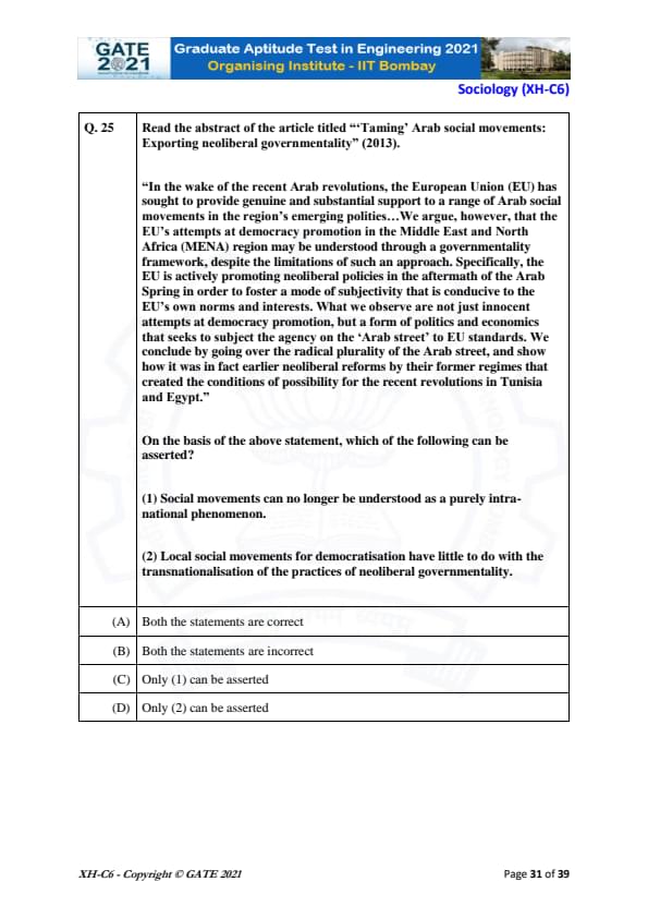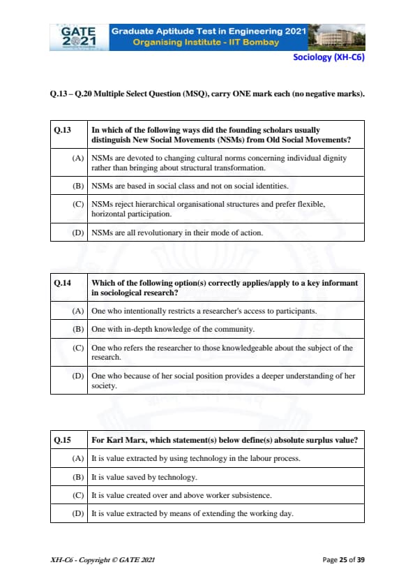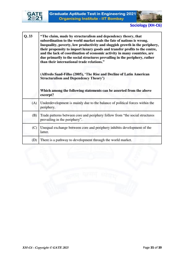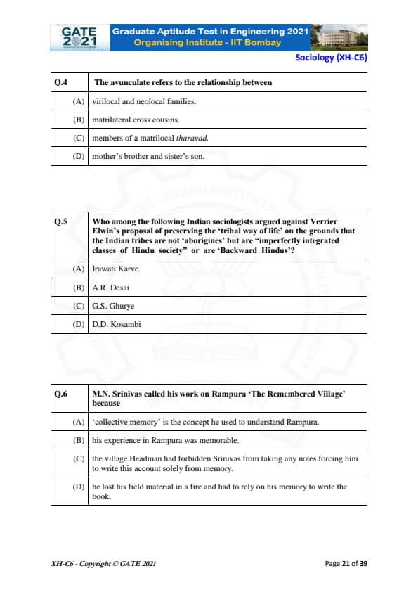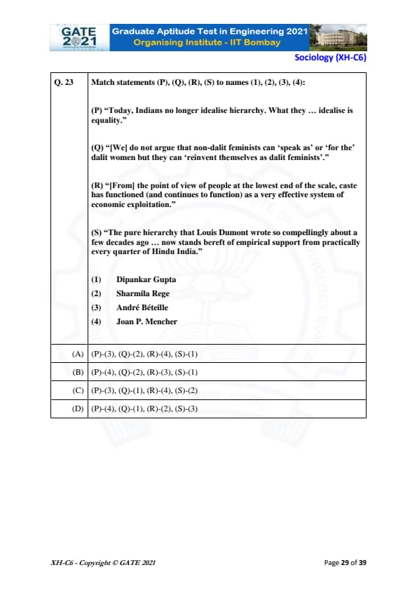 | GATE 2021 Humanities and Social Sciences (XH), Economics (XH-C1) Question Paper | Check Solutions |