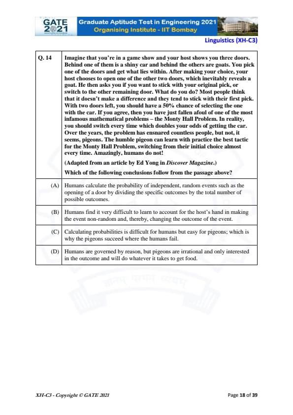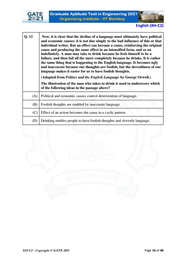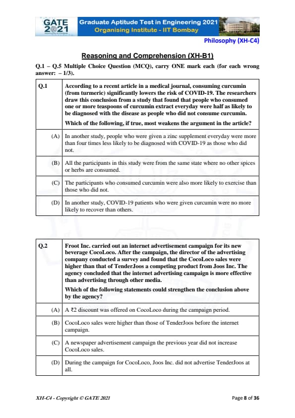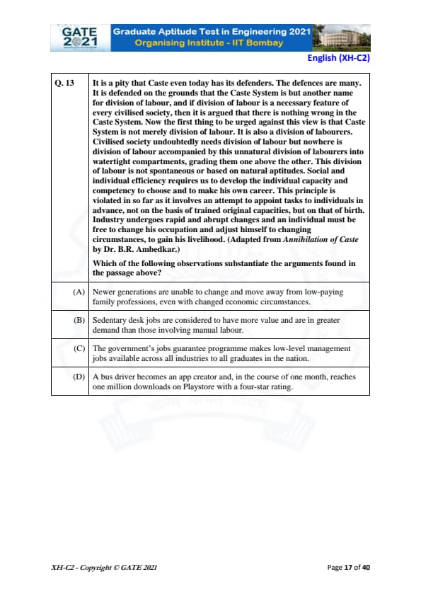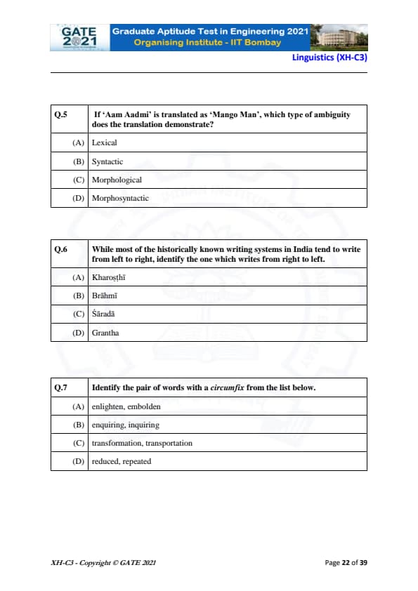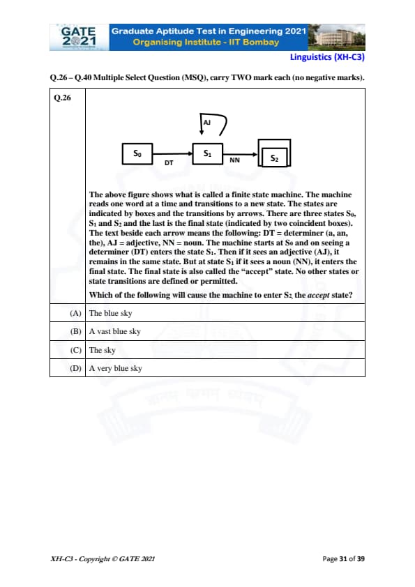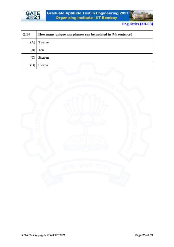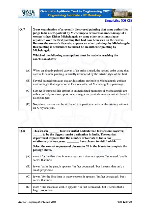 GATE 2021 XH Detailed Paper Analysis