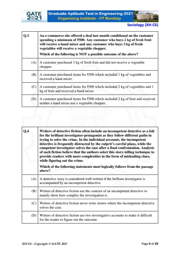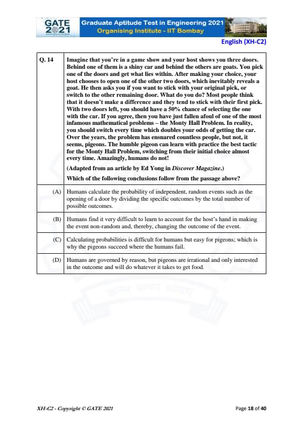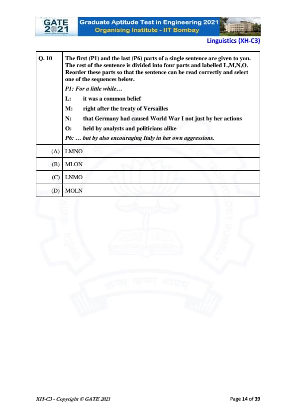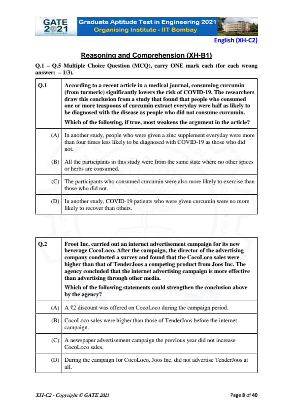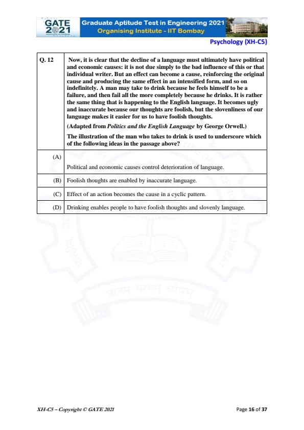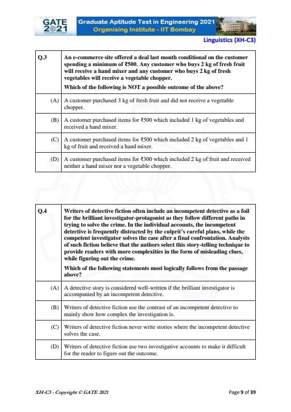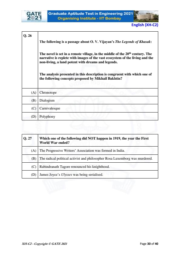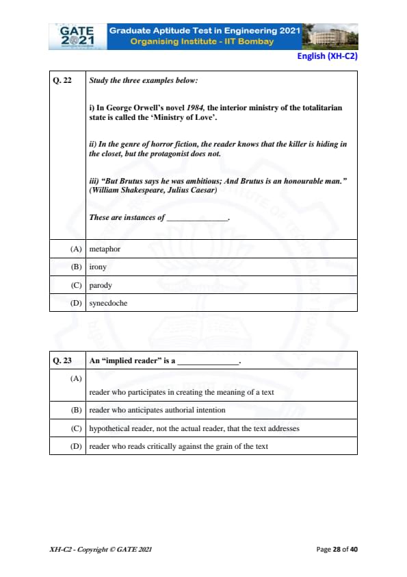 GATE 2021 XH Detailed Paper Analysis