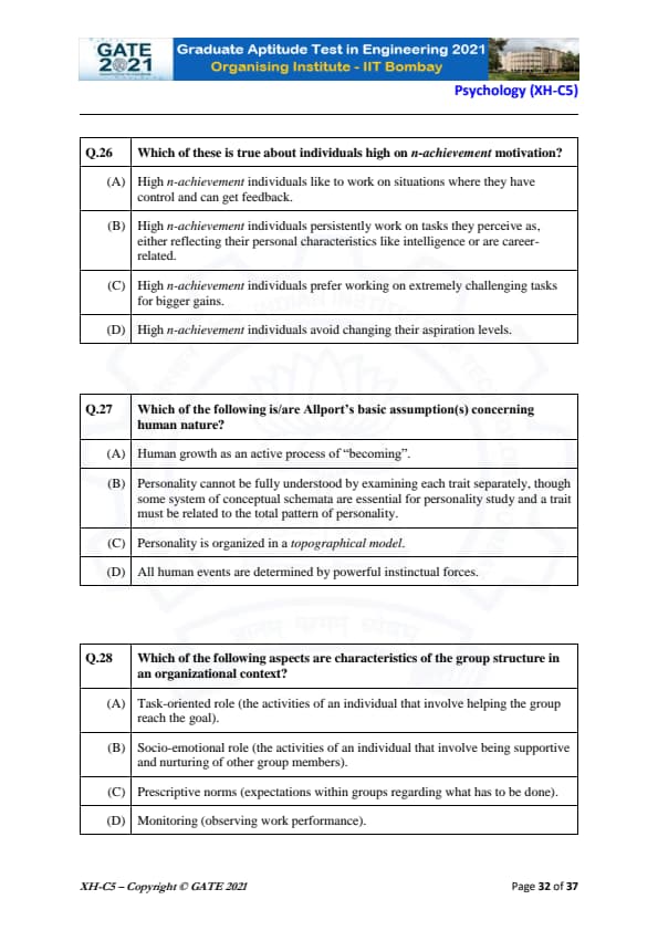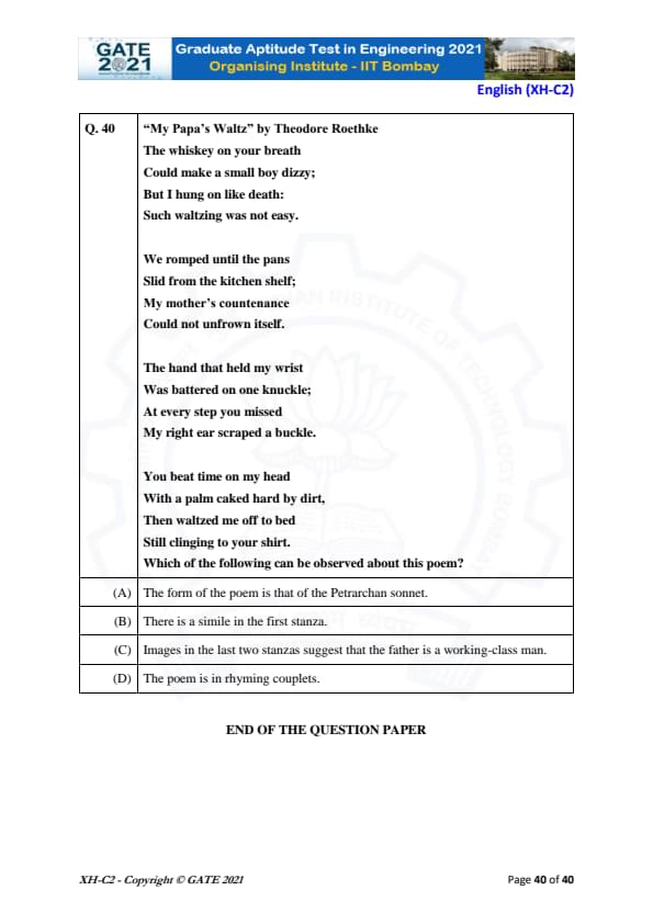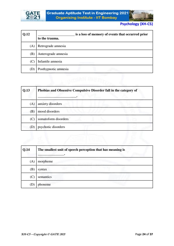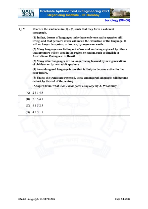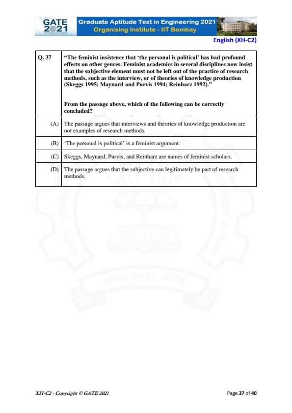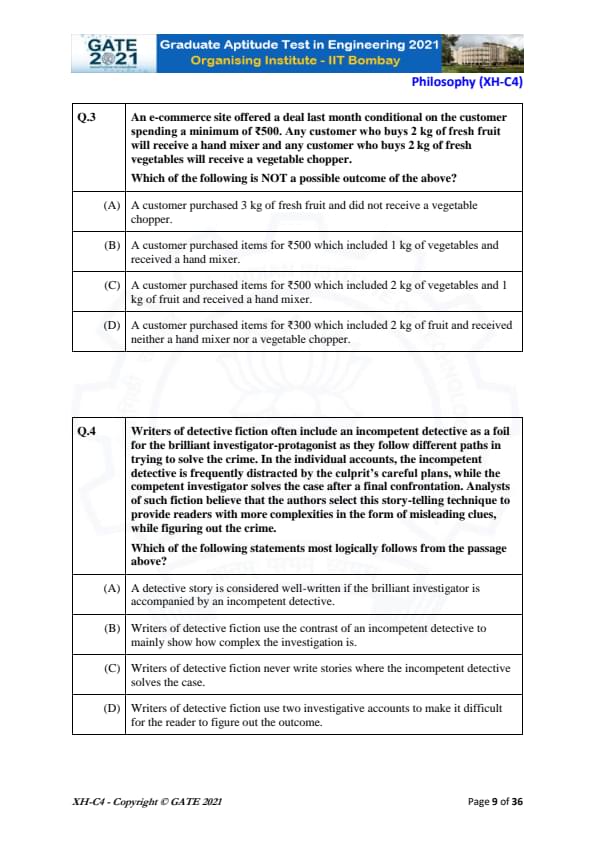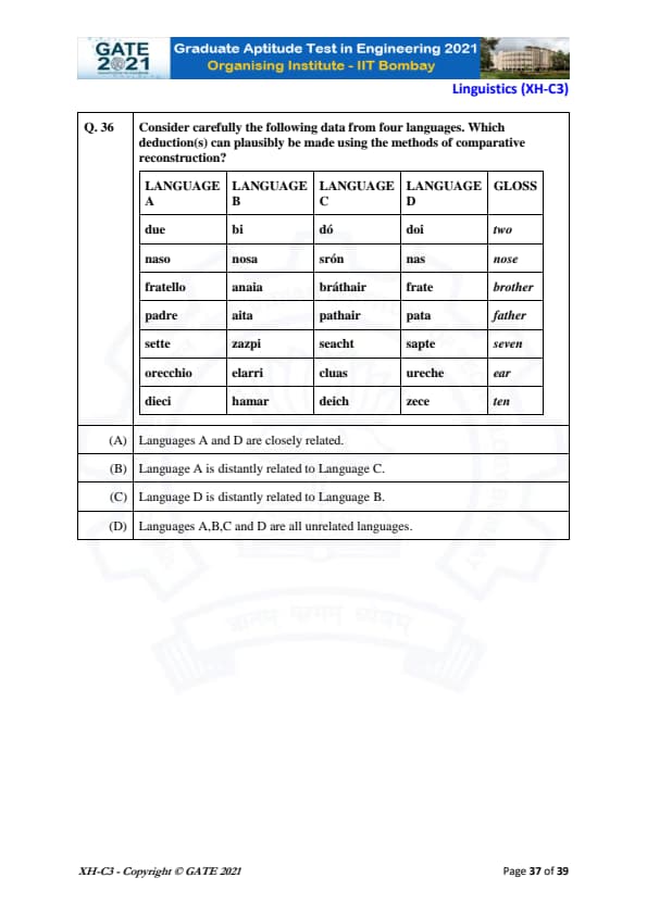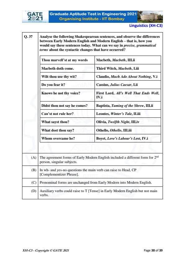 GATE 2021 XH Detailed Paper Analysis
