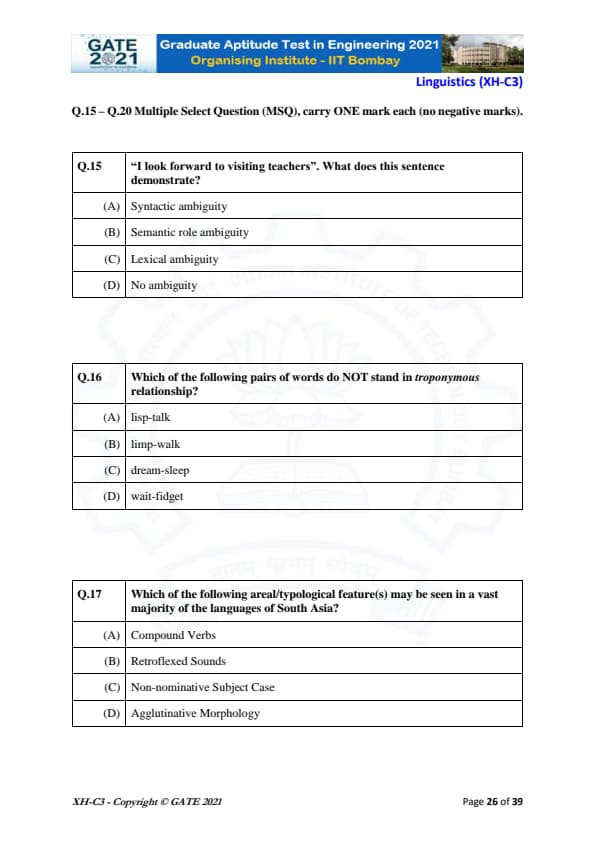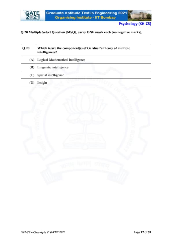- The MSQs carried 10 marks, distributed between 5 questions (2 marks each question)