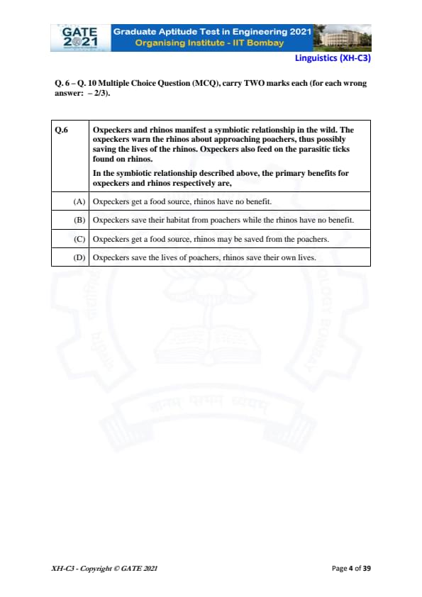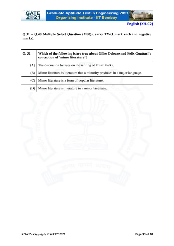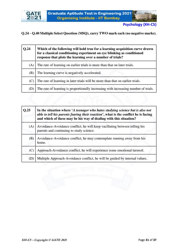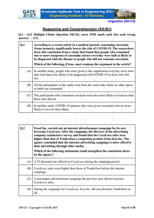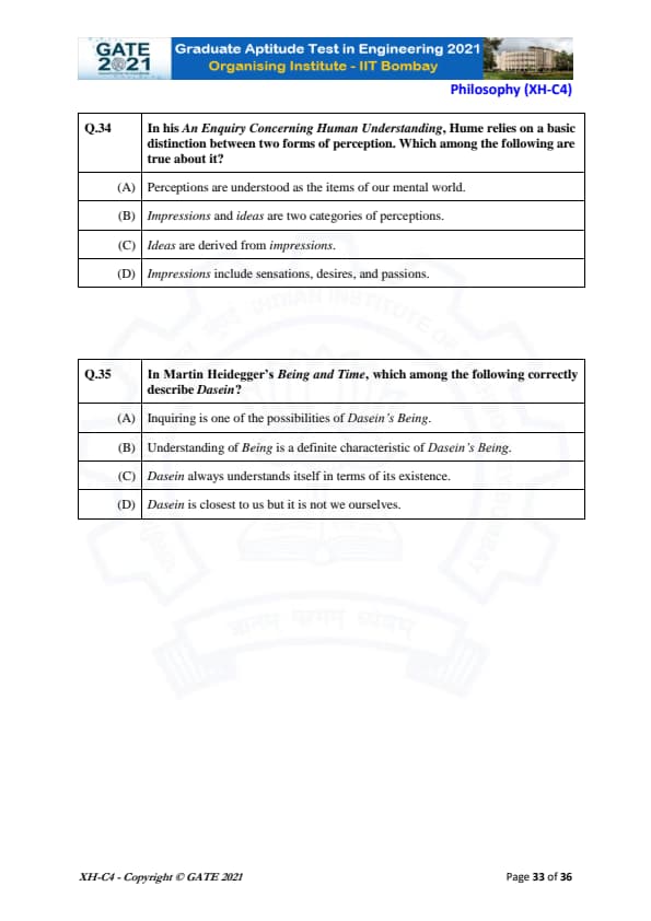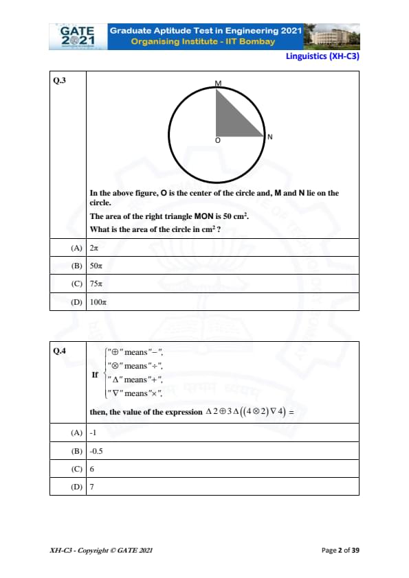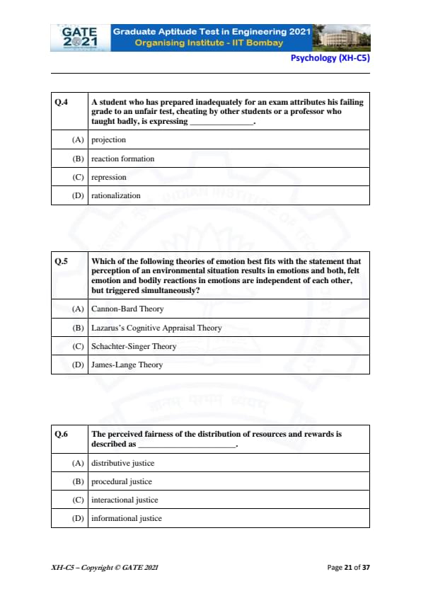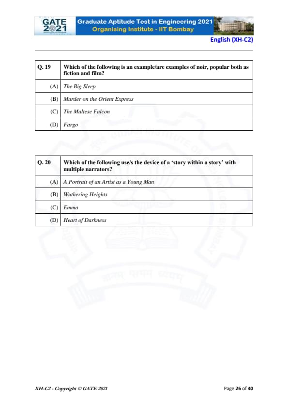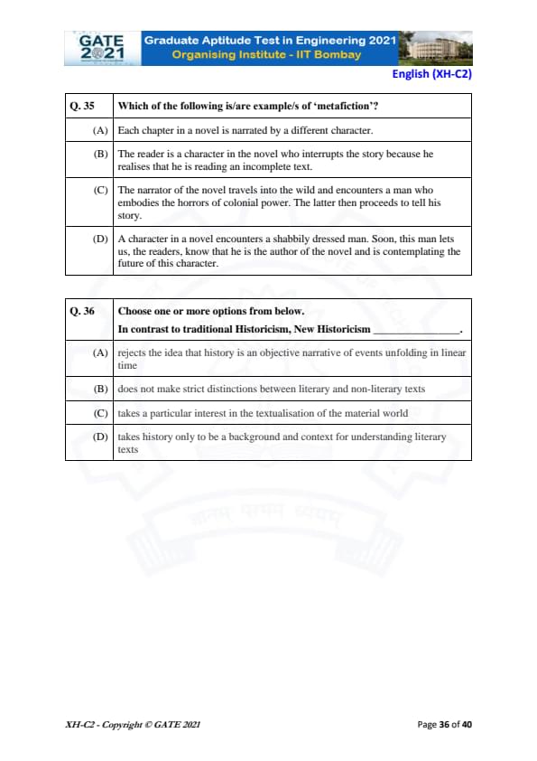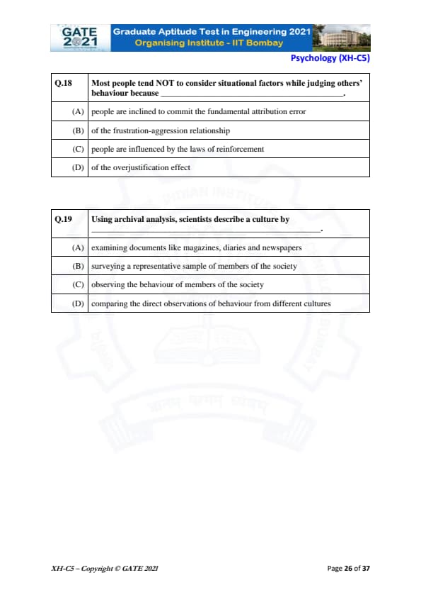 GATE 2021 XH Exam Pattern and Marking Scheme