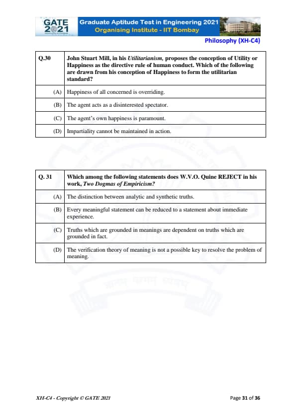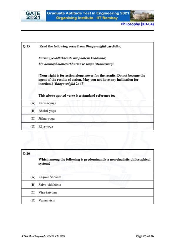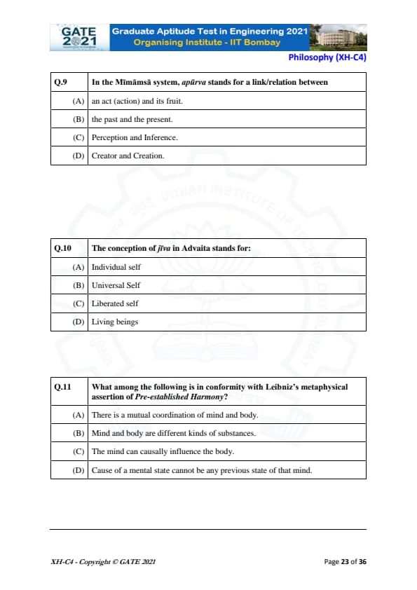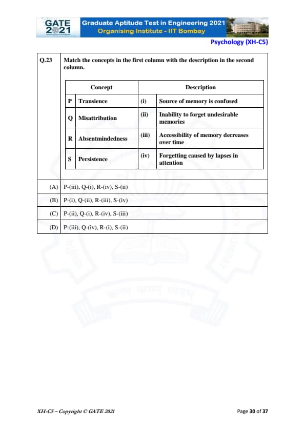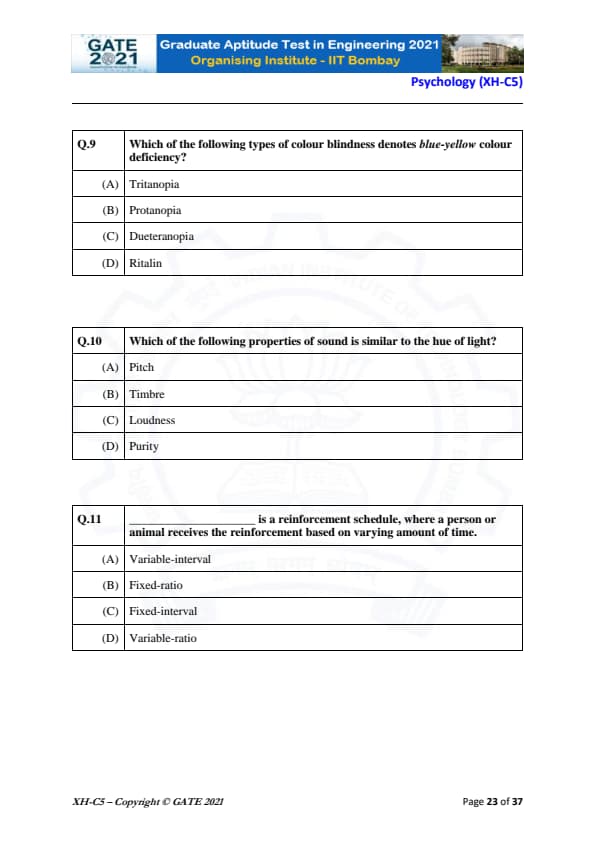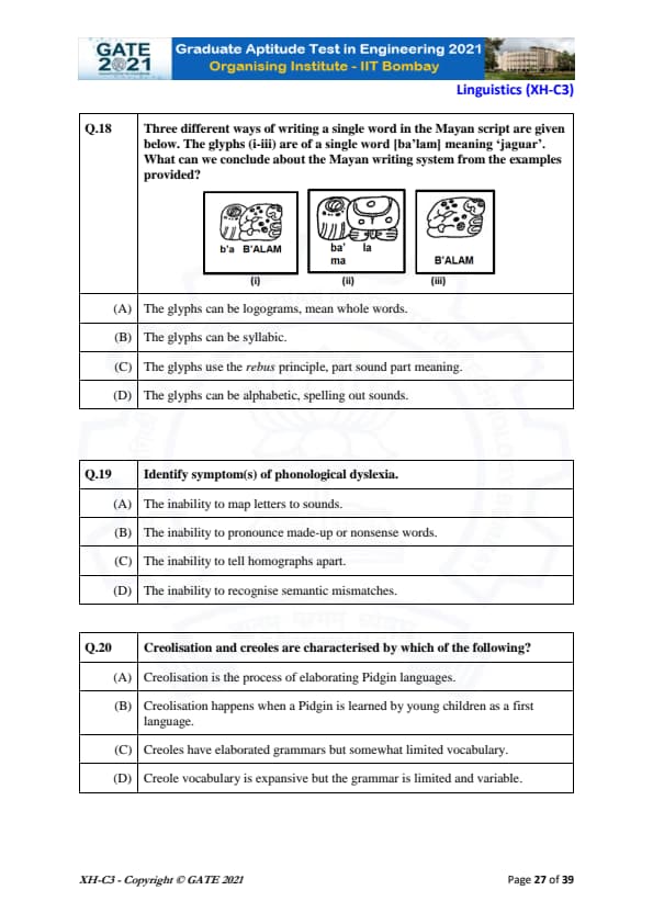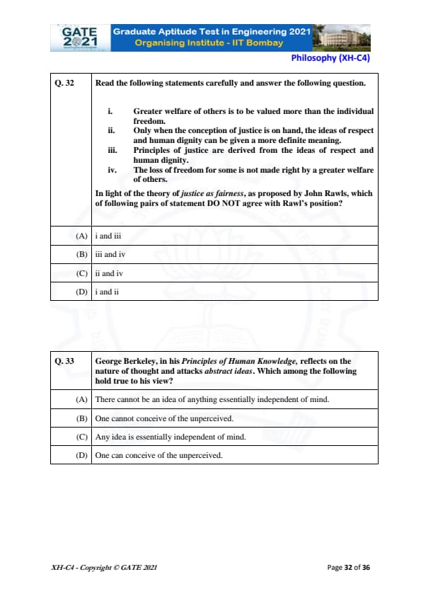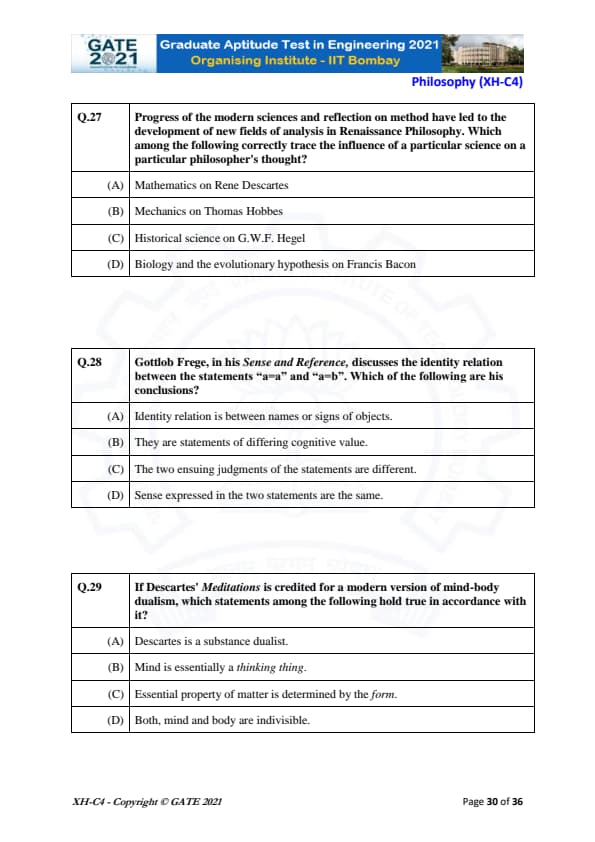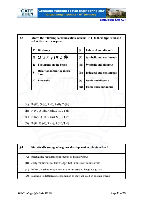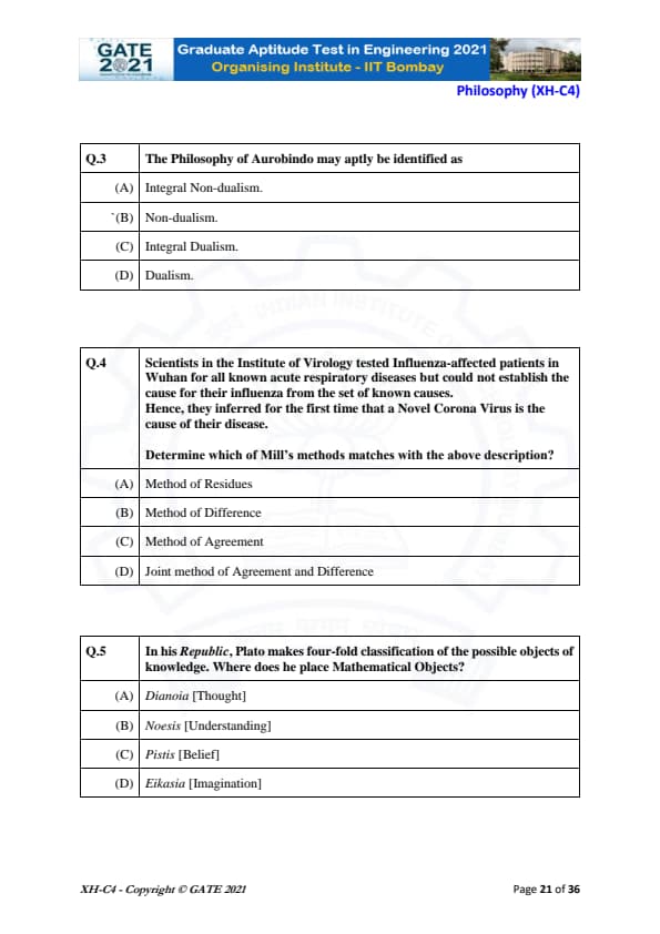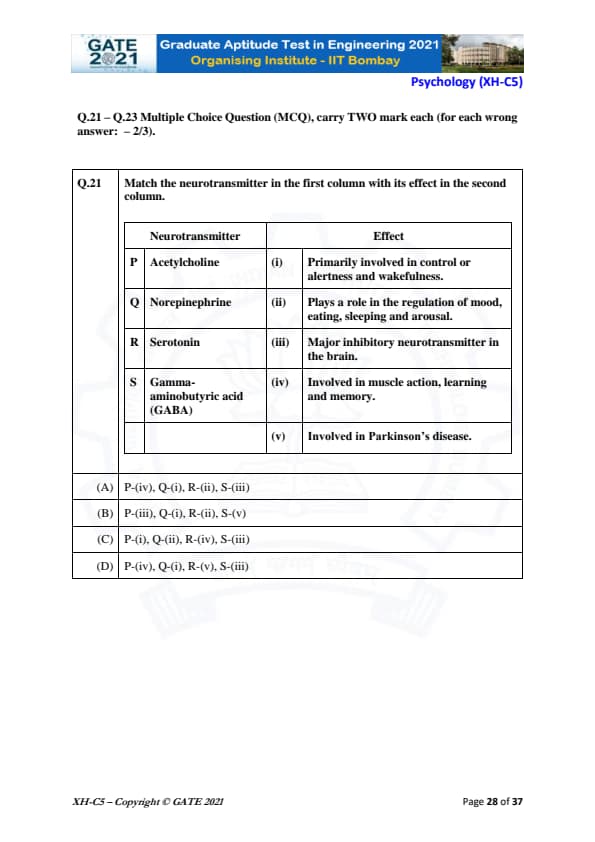 GATE 2021 XH Exam Pattern and Marking Scheme