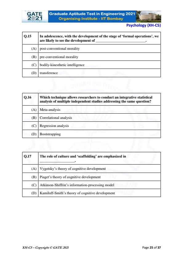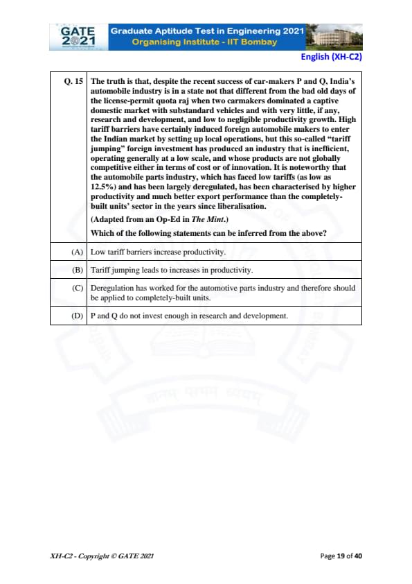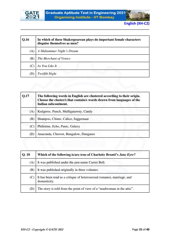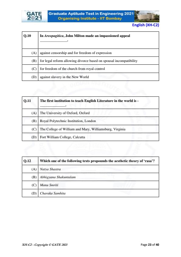 GATE Previous Year Question Papers:
