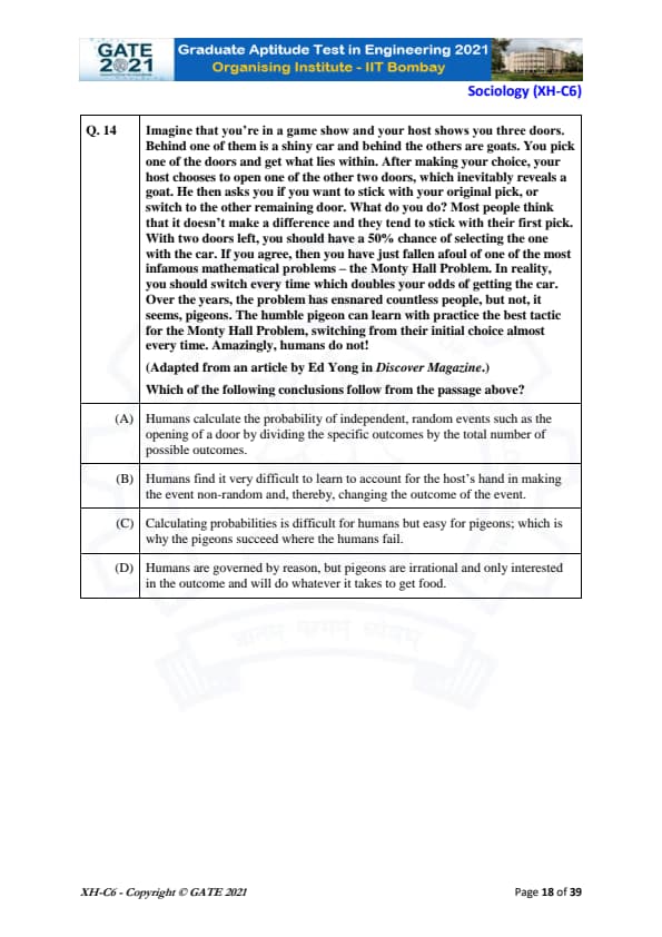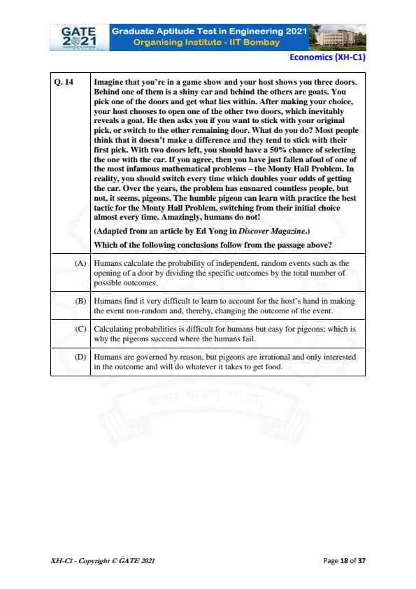 GATE 2021 Humanities and Social Sciences (XH), Economics (XH-C1) Question Paper with Solutions is available now. GATE 2021 XH was conducted on 14th February by IIT Bombay. GATE 2021 XH comprises several optional subjects sections out of which one section is compulsory to attempt. The total marks of the exam was 100. The overall difficulty level of GATE 2021 XH-C1 was easy to moderate. Candidates would get 3 hours to solve the questions listed in the two sections of GATE 2021 XH.