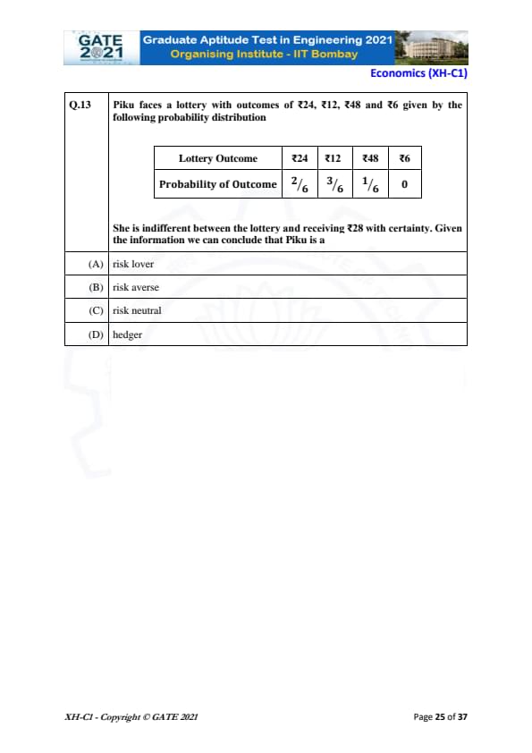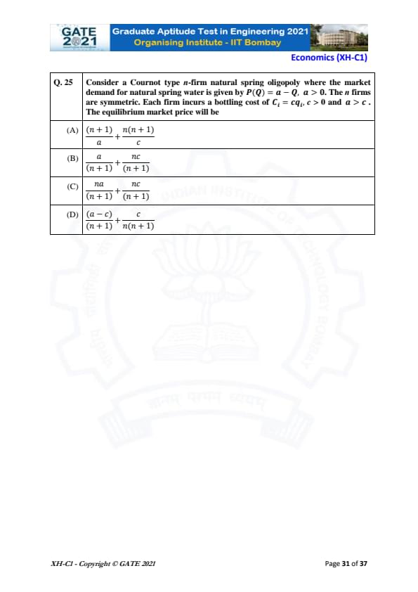 GATE 2021 Humanities and Social Sciences (XH), Economics (XH-C1) Question Paper with Solutions