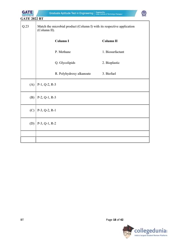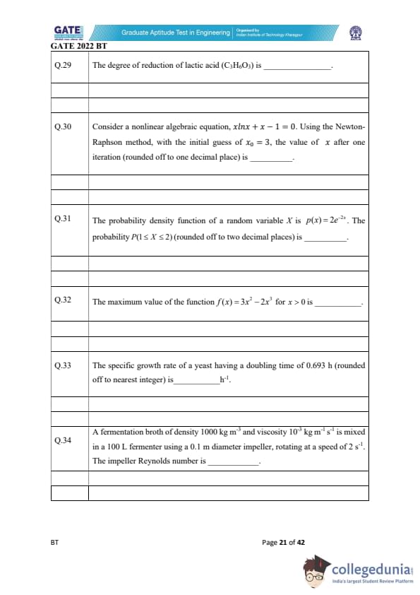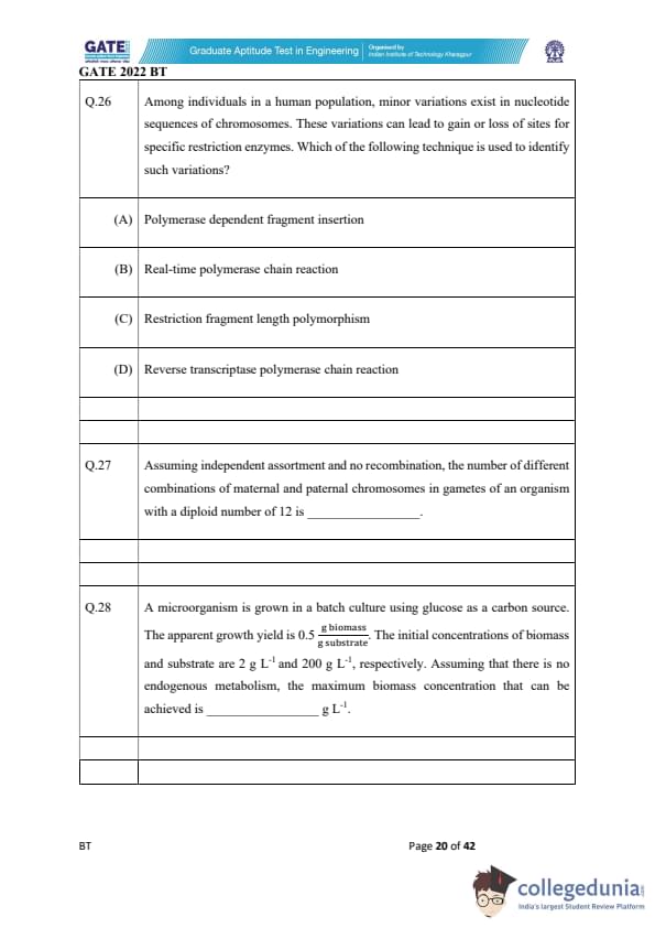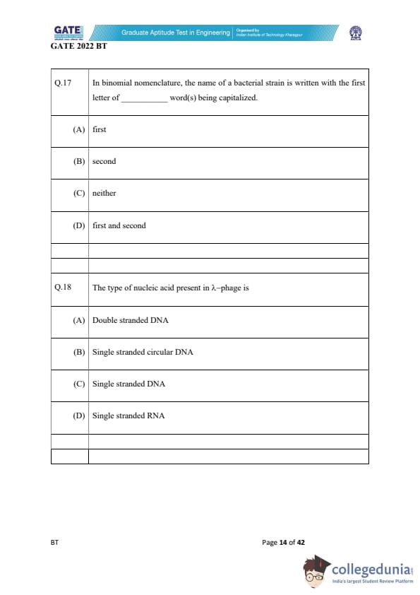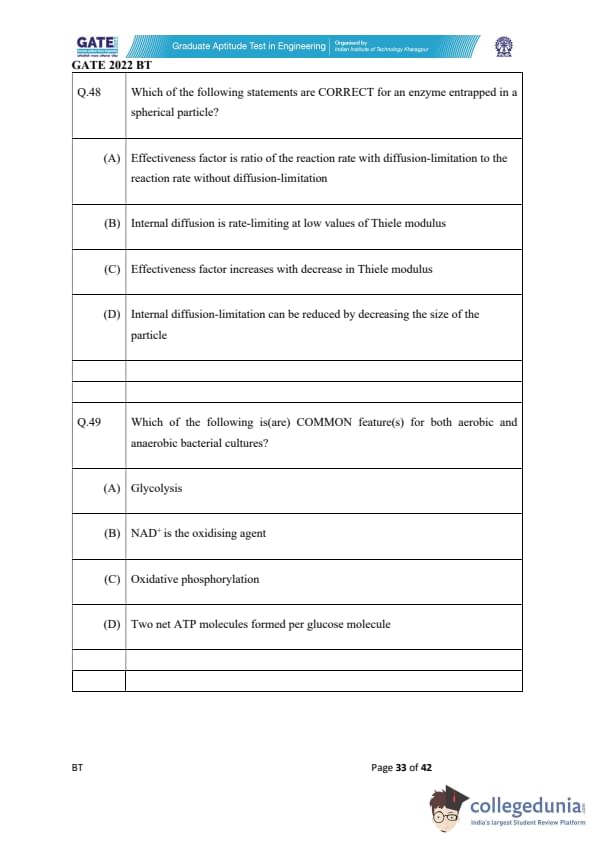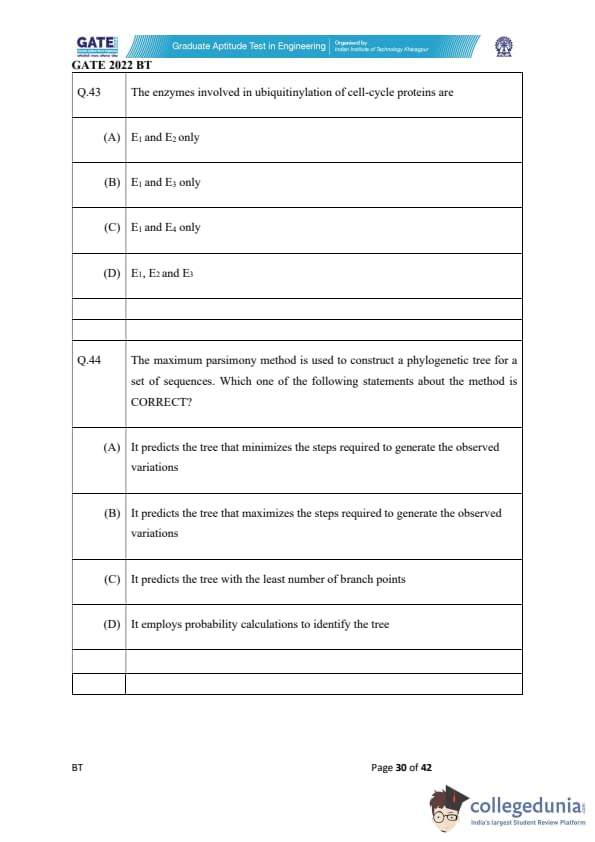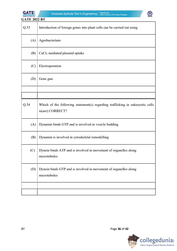 GATE 2022 BT Question Paper with Answer Key PDFs – February 12 (Forenoon Session)