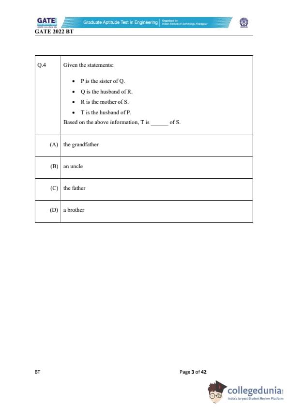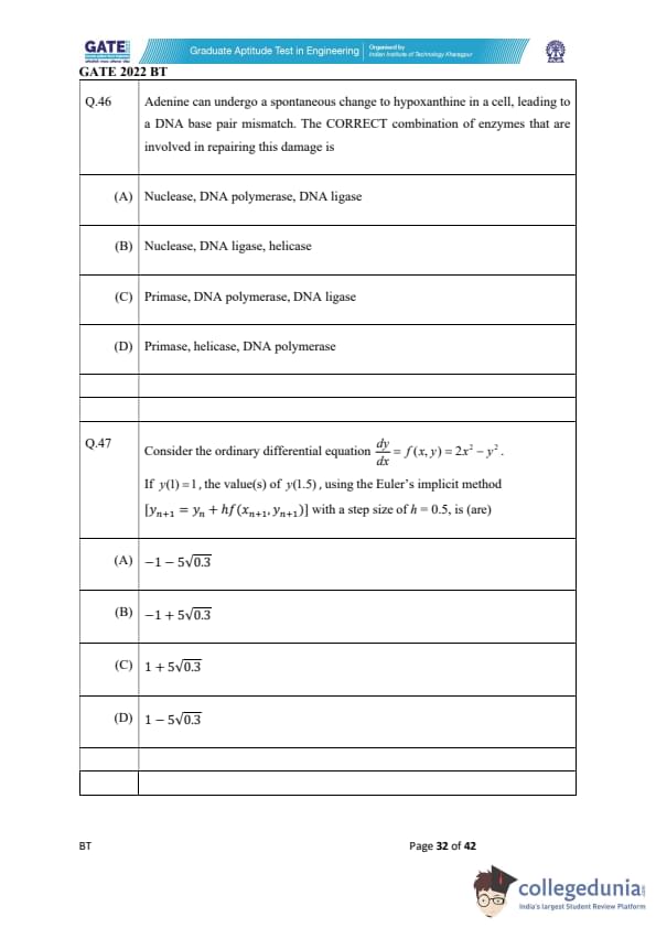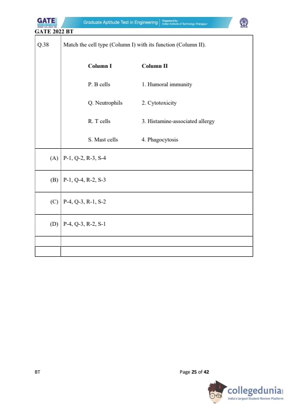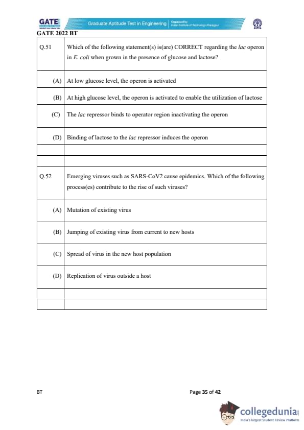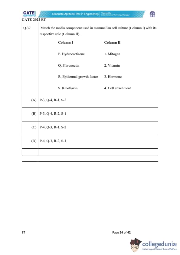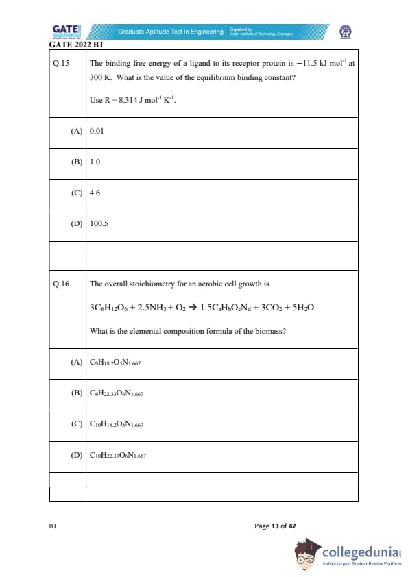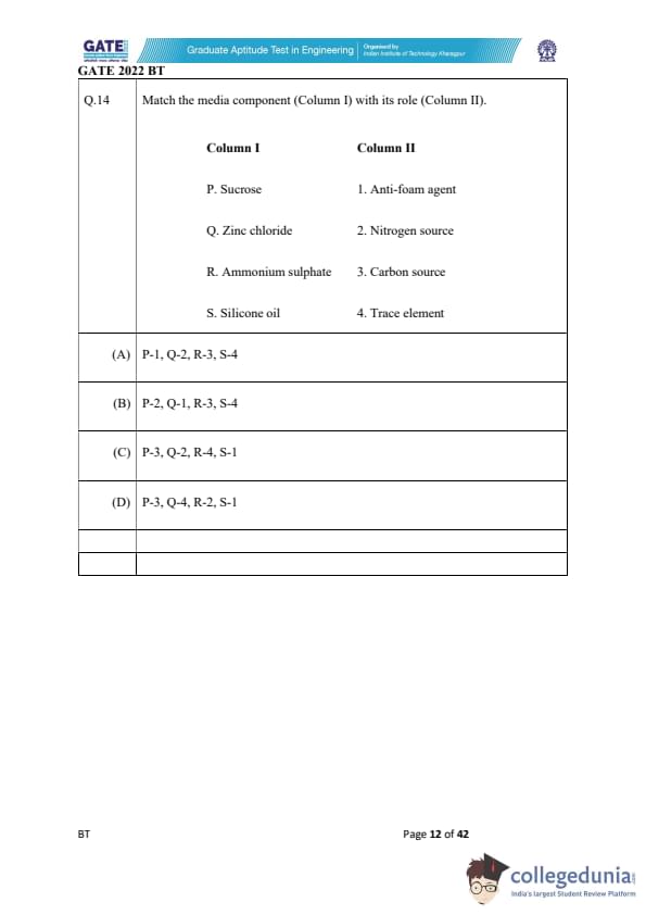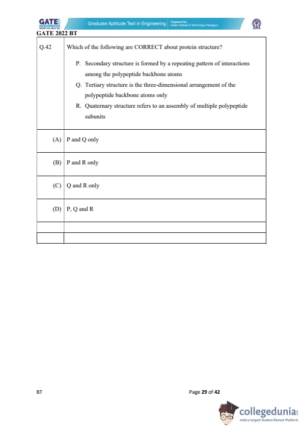 GATE 2022 BT Question Paper with Answer Key PDFs – February 12 (Forenoon Session)