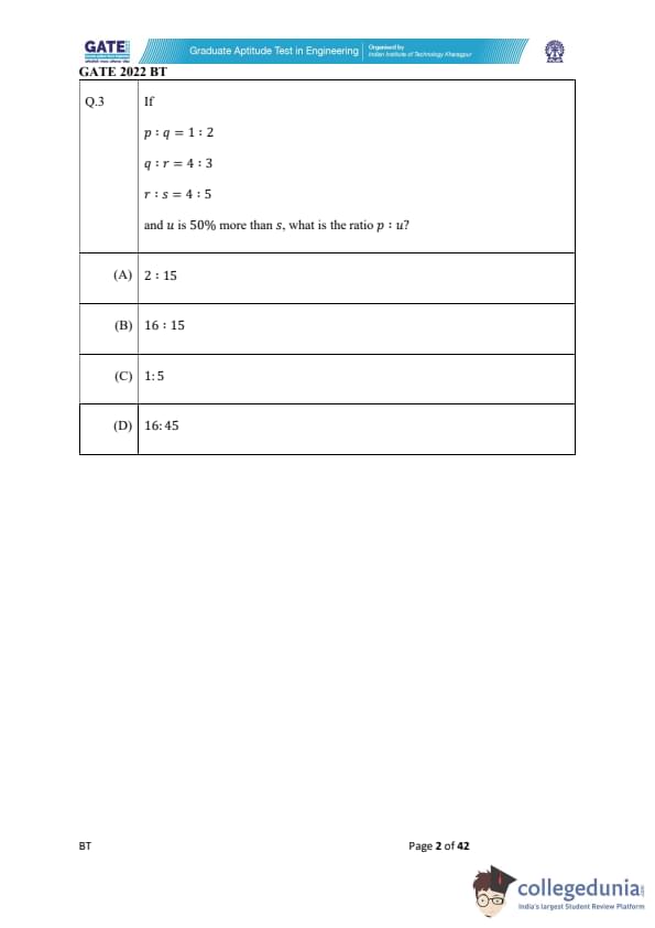 - GATE 2022 BT asked both MCQs and NATs. It was held online via CBT mode