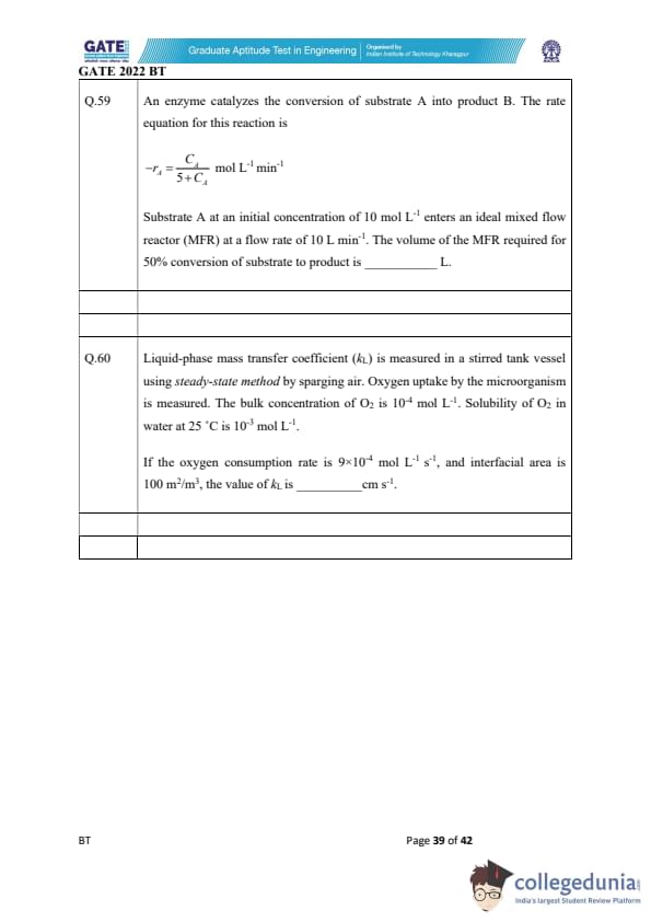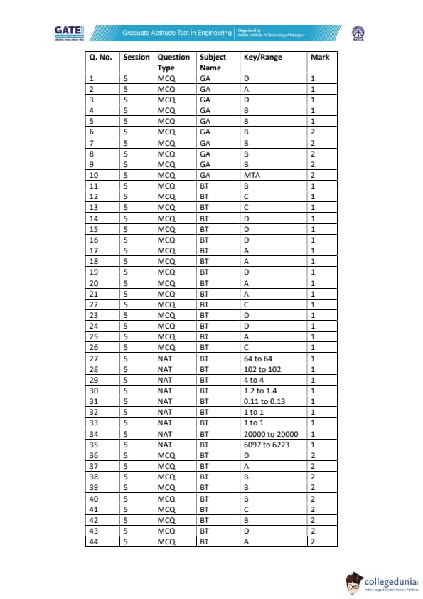 Candidates targeting GATE can download the PDFs for GATE 2022 BT Question Paper and Answer Key to know the important topics asked, and check their preparation level by solving the past question papers.