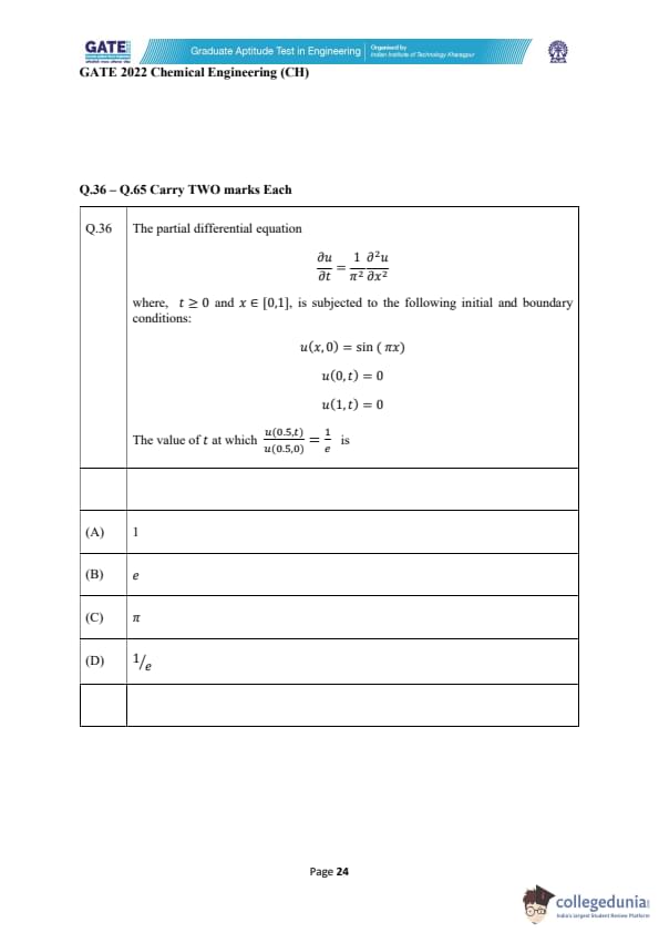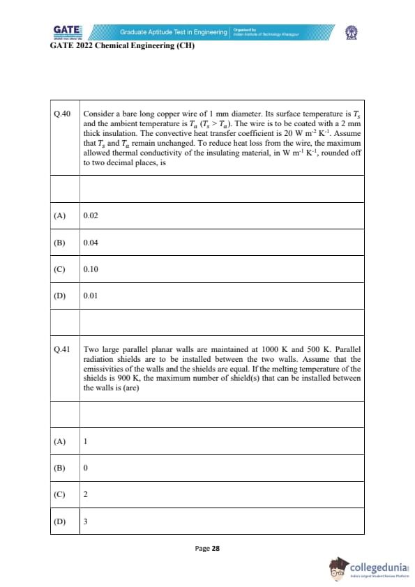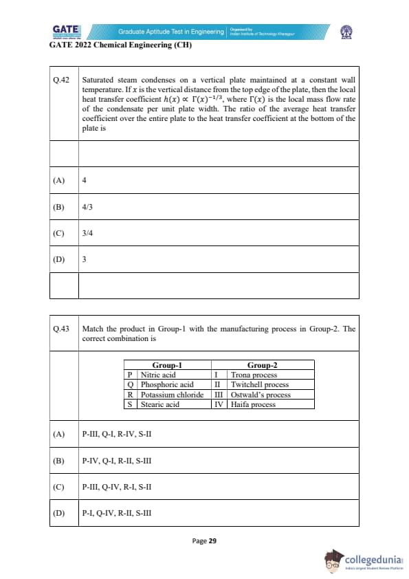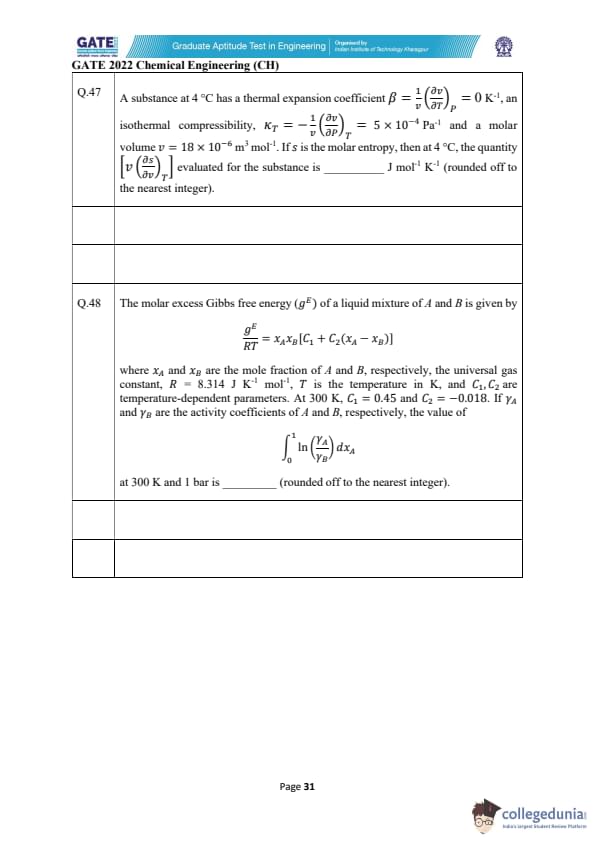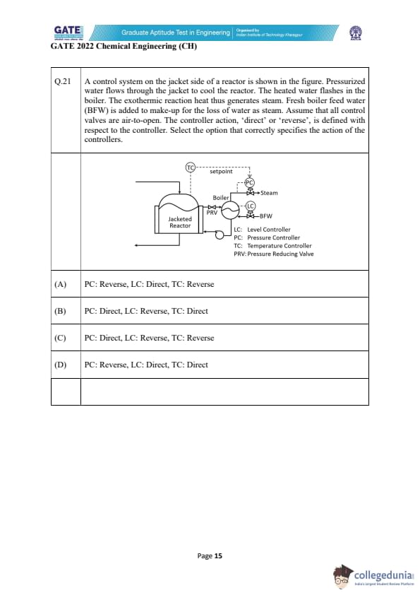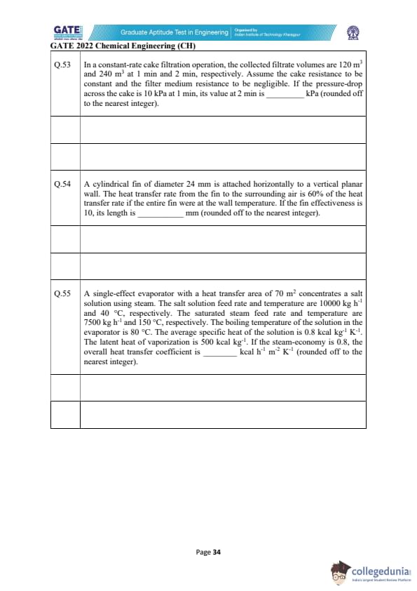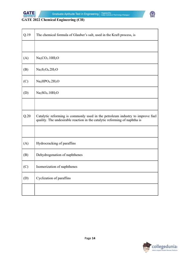 | GATE 2022 Chemical Engineering (CH) Question Paper | Check Solutions |