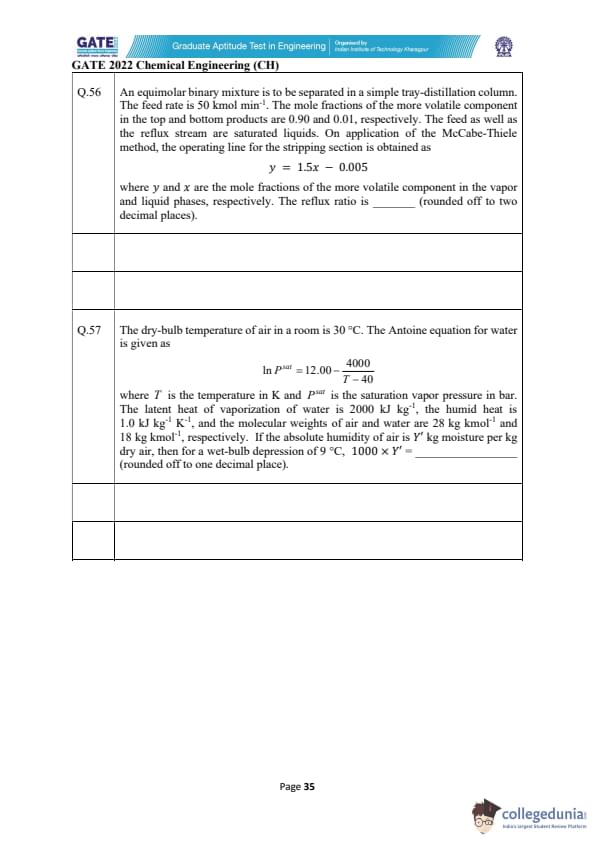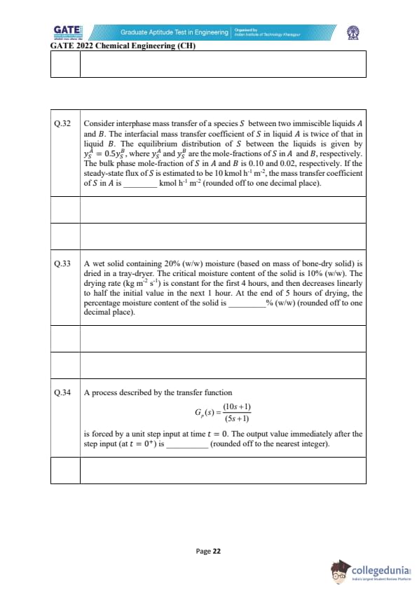 GATE 2022 Chemical Engineering (CH) Question Paper with Solutions