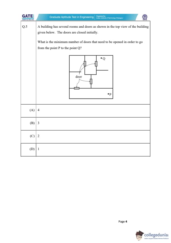 Quick Tip: In problems involving paths through buildings or networks, always look for the shortest route by considering the number of obstacles (like doors) that need to be overcome. Sometimes drawing the diagram helps in visualizing the best path.