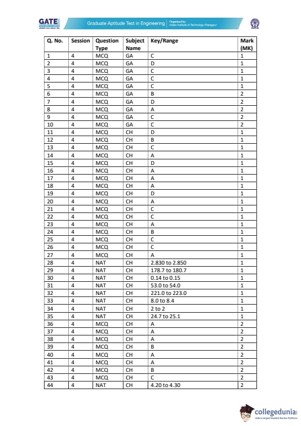 - No MSQs (Multiple Select Questions) were asked in GATE 2022 CH
