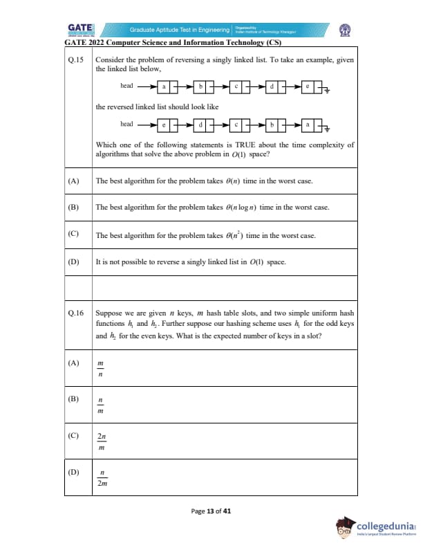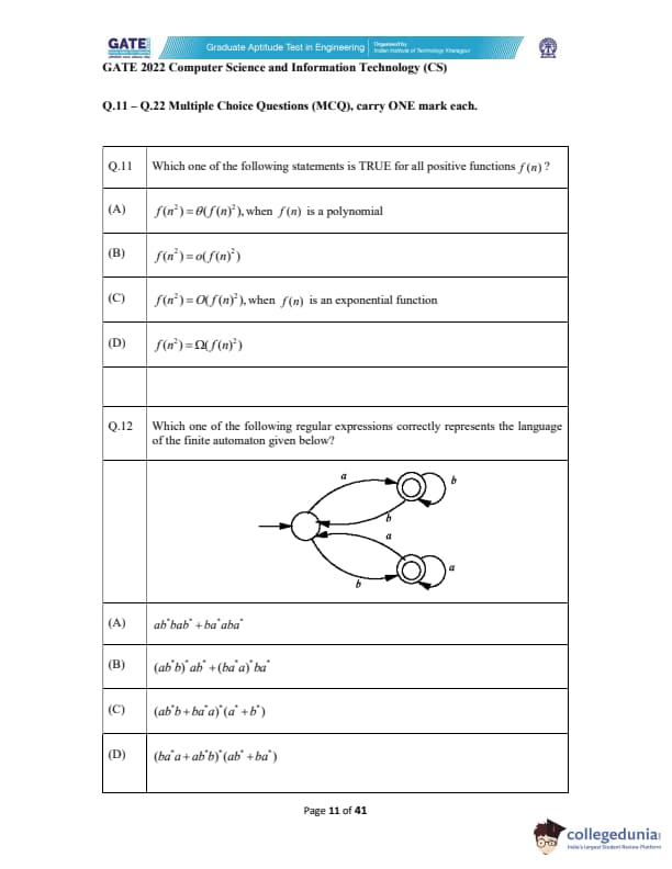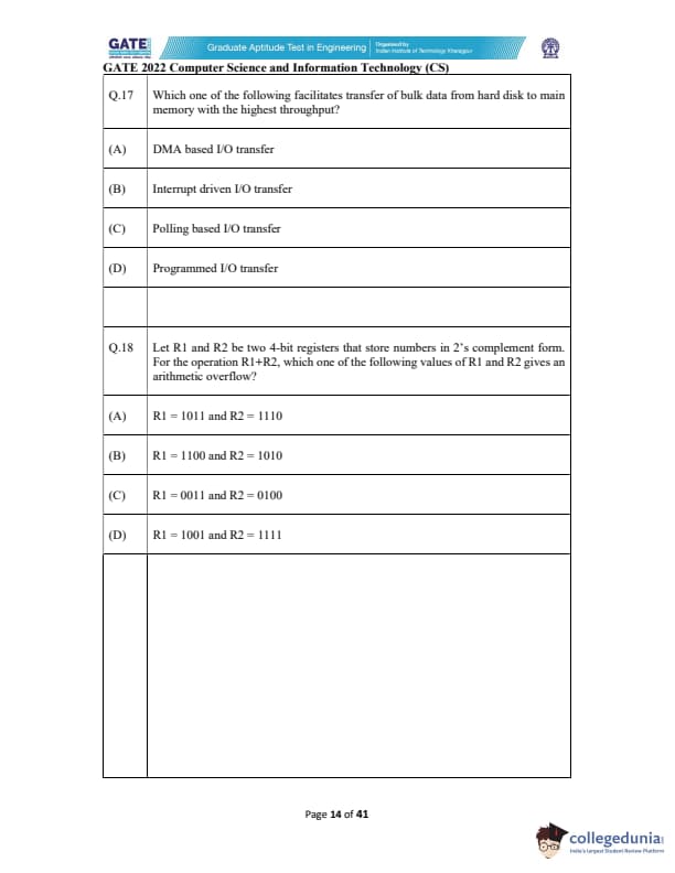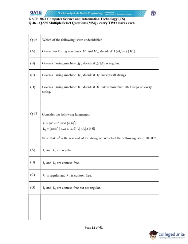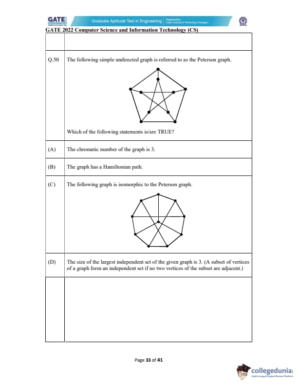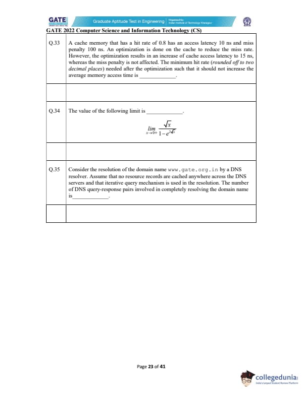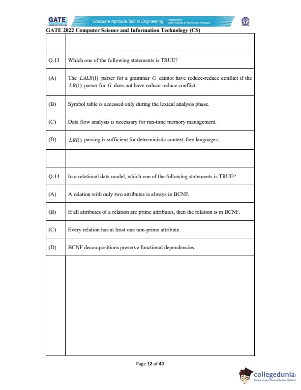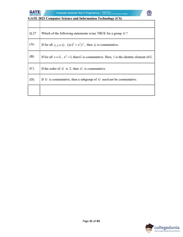 | GATE 2022 Computer Science and Information Technology (CS) Question Paper | Check Solutions |