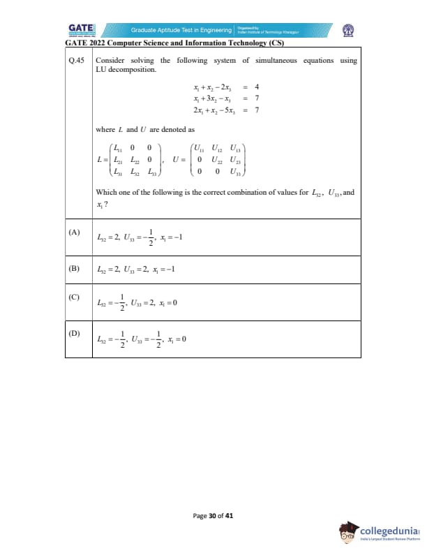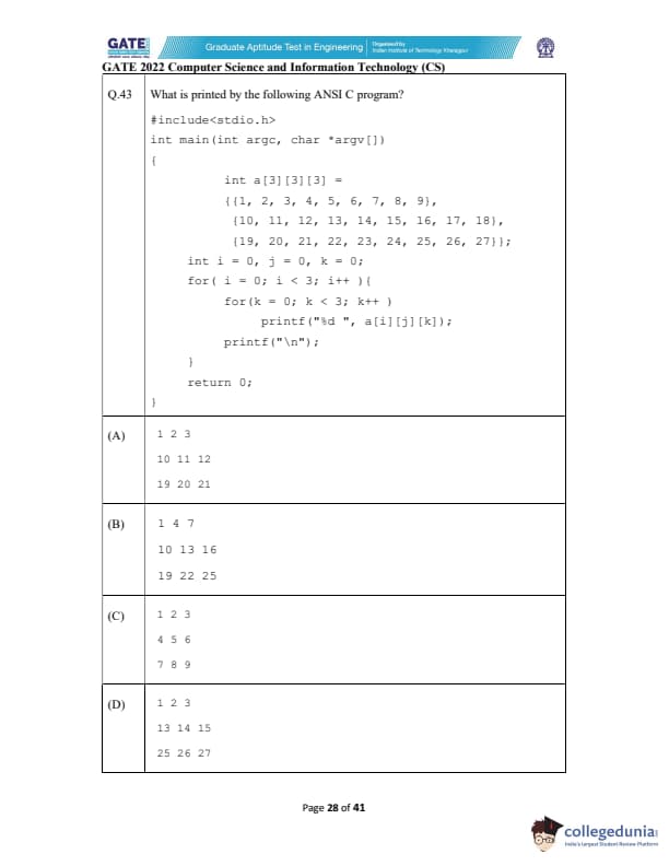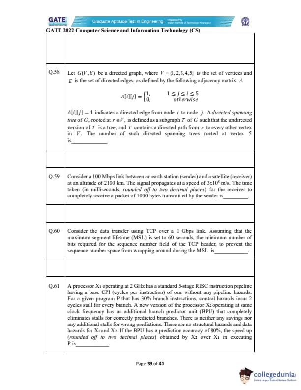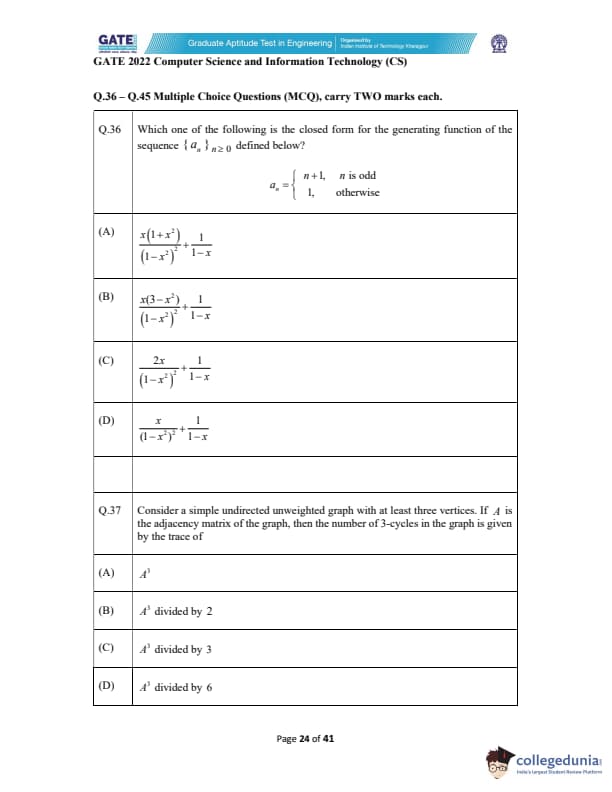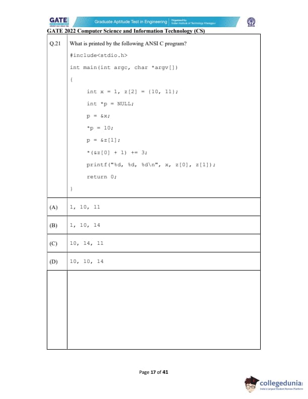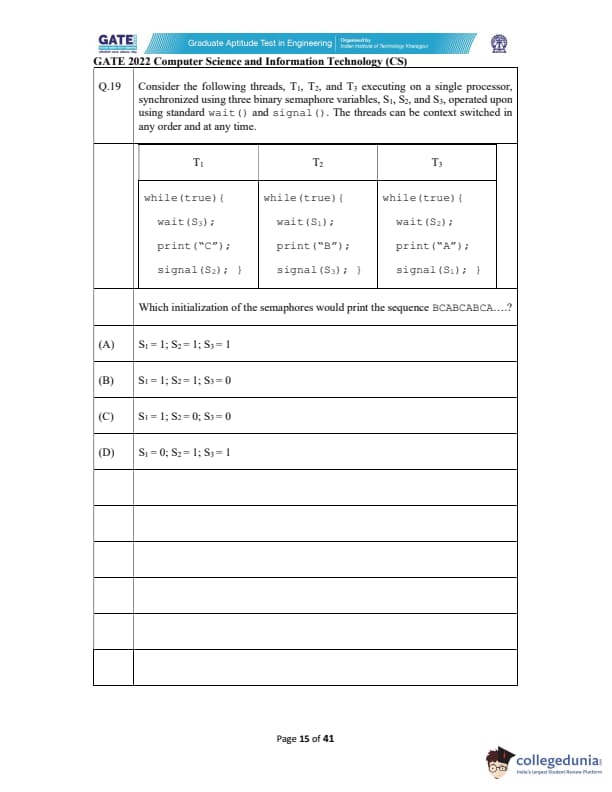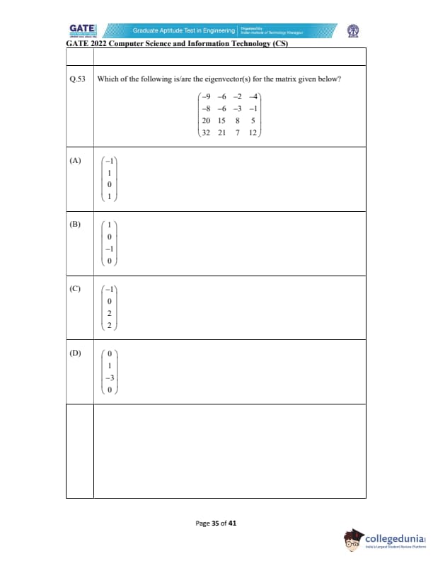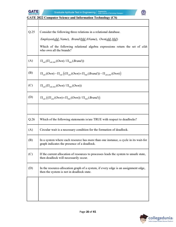 | GATE 2022 Computer Science and Information Technology (CS) Question Paper | Check Solutions |