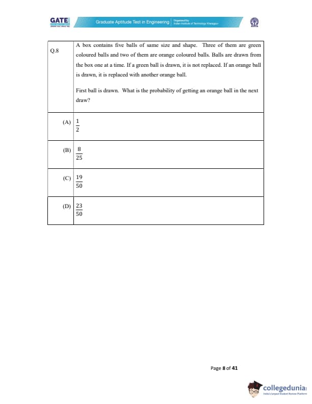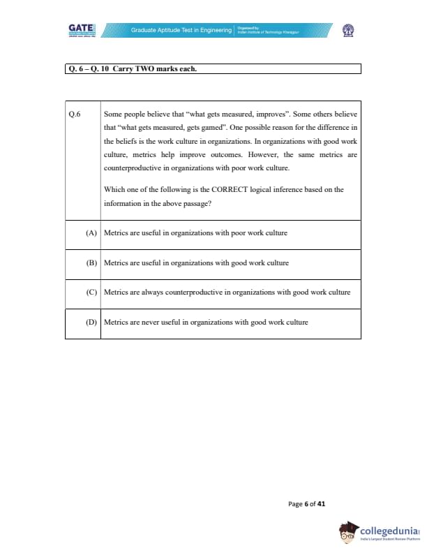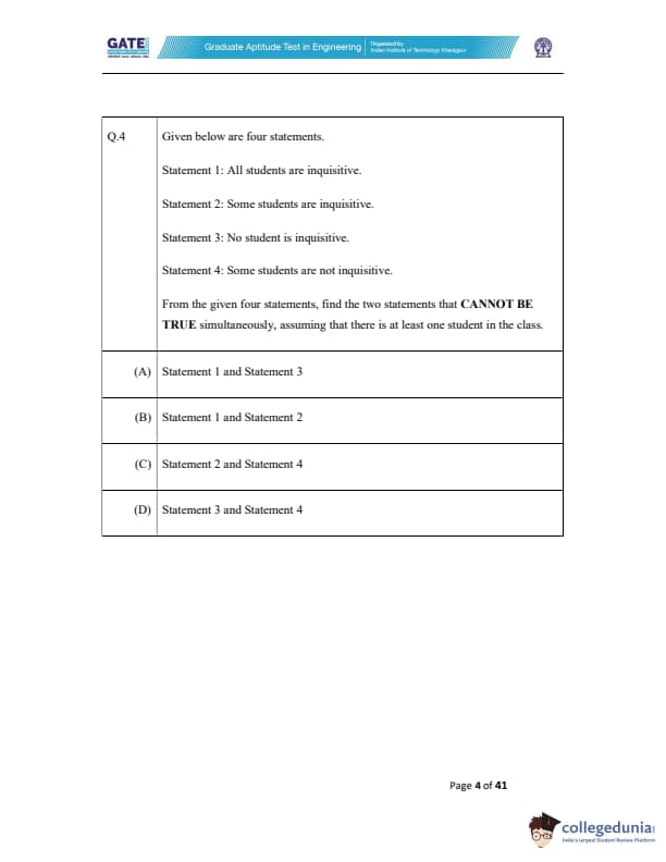 The conducting authorities had MSQs from the year 2021. MSQs comes with one or more than one correct answers. A student had to choose all the correct answers to solve MSQs correctly. Likewise, NATs no marks would be deducted if students attempt wrong or incorrect MSQs. MSQs, MCQs and NATs constituted the GATE 2021 CY. Each question holds either 1 or 2 marks. There were a total of 65 questions holding 100 marks.