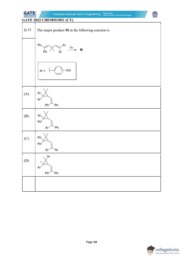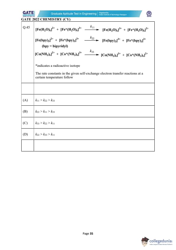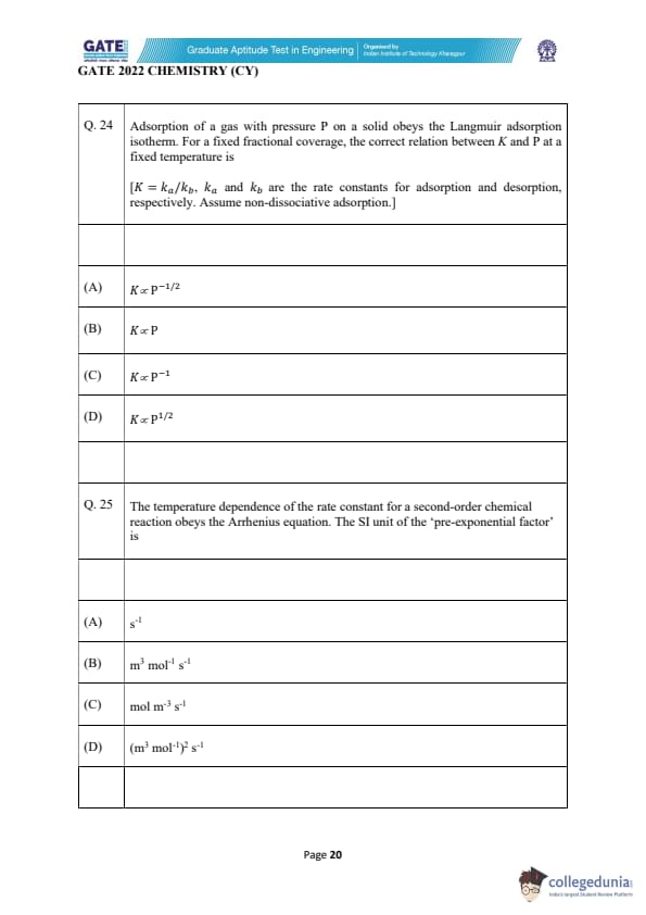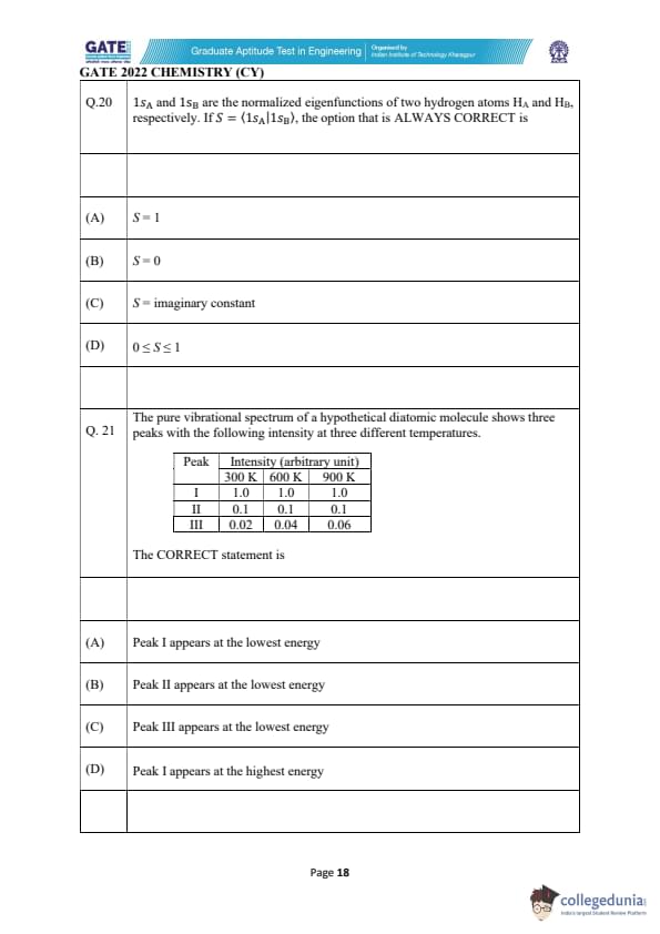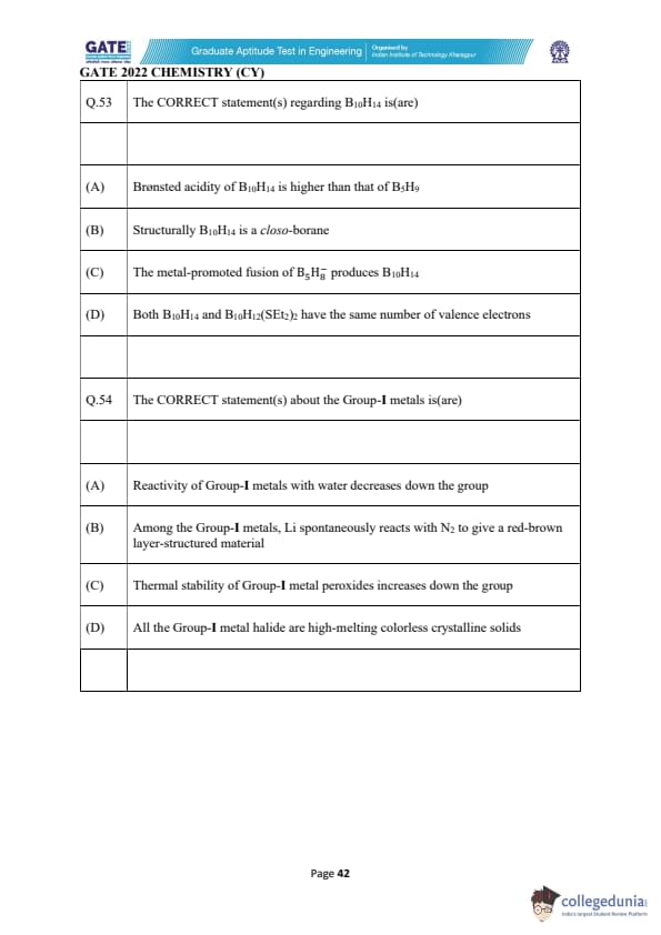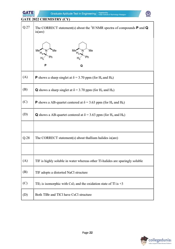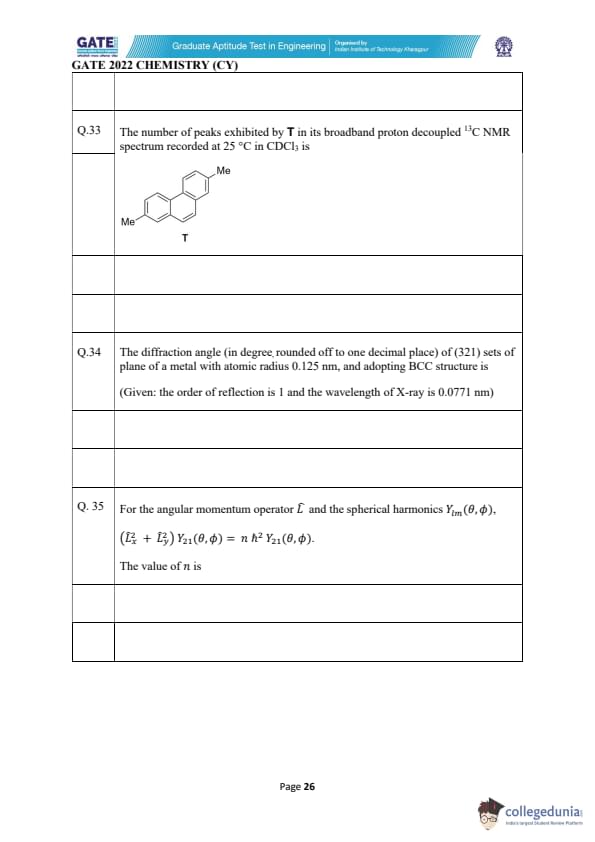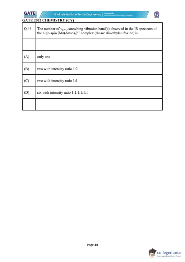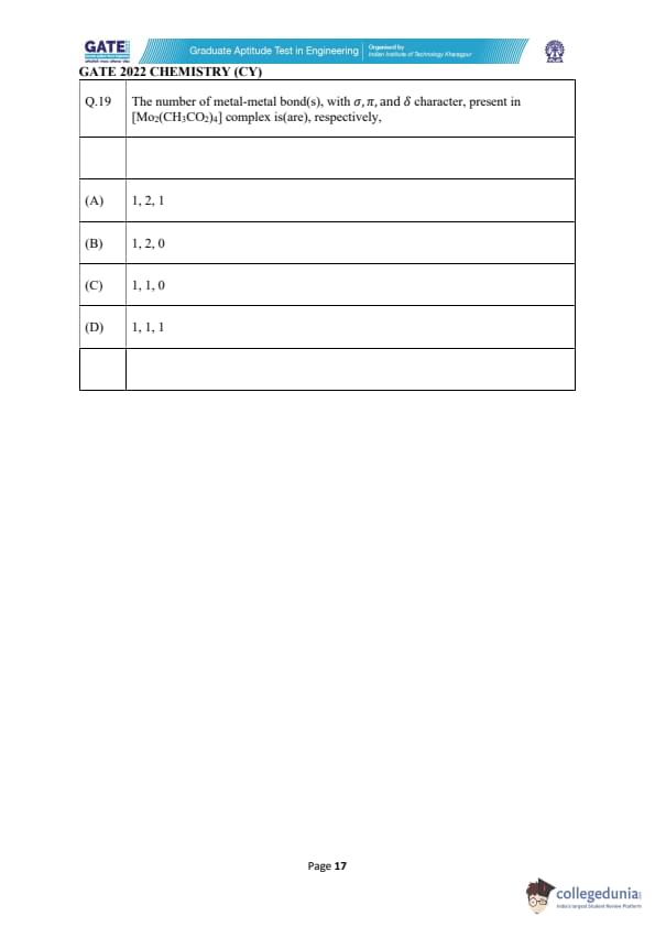 | GATE 2022 Chemistry (CY) Question Paper | Check Solutions |