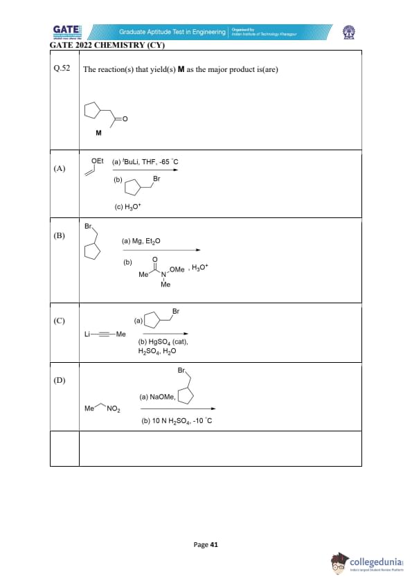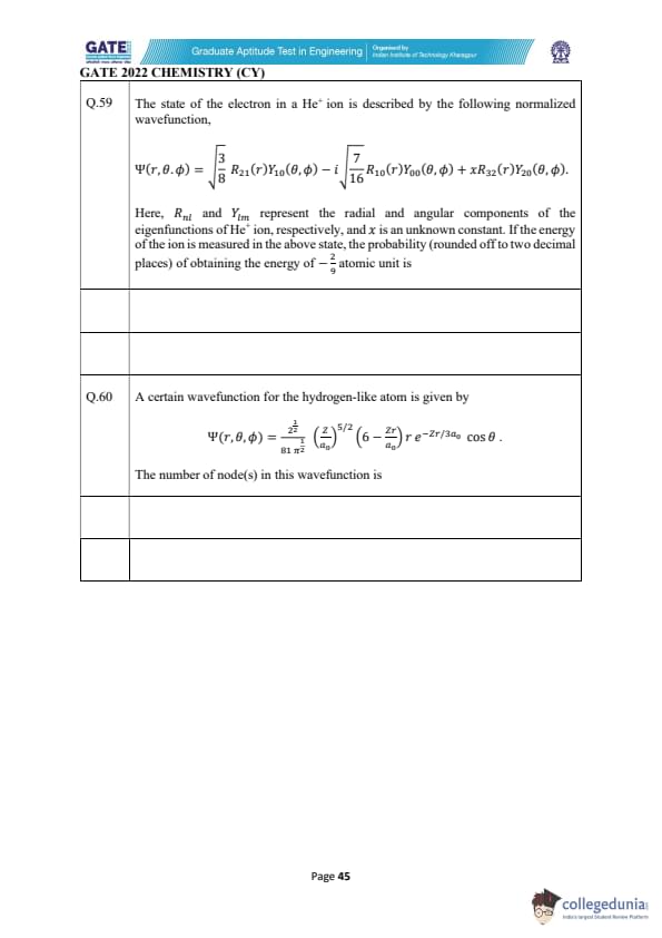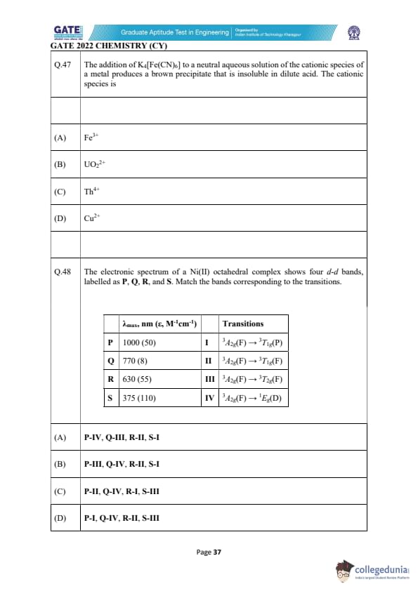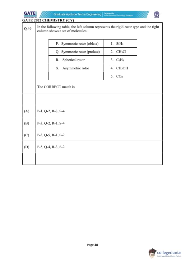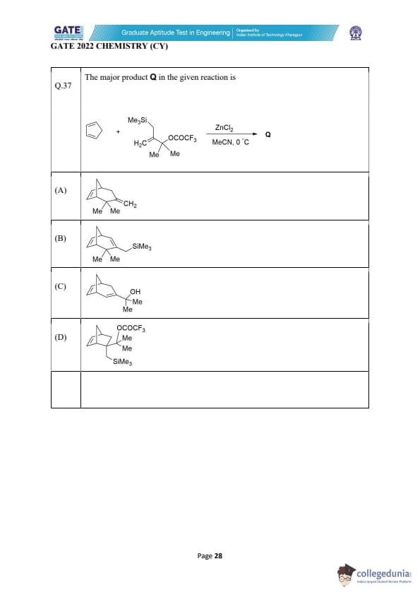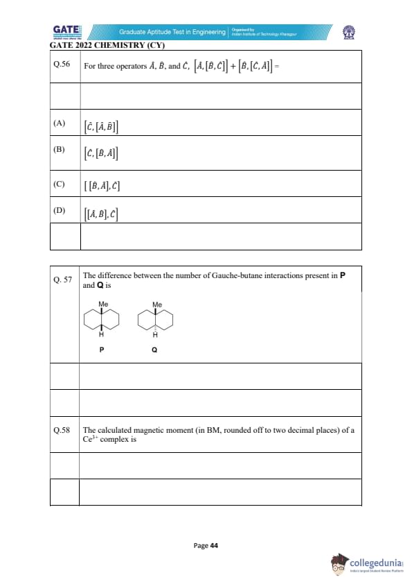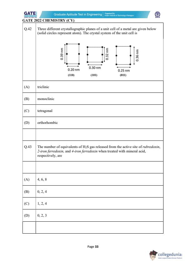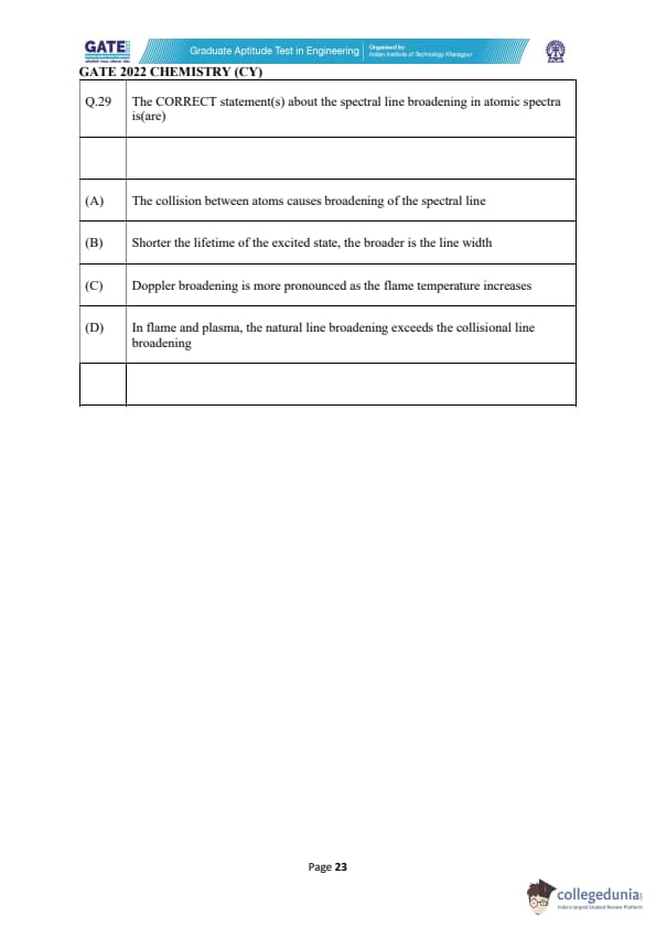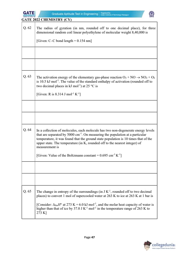 | GATE 2022 Chemistry (CY) Question Paper | Check Solutions |