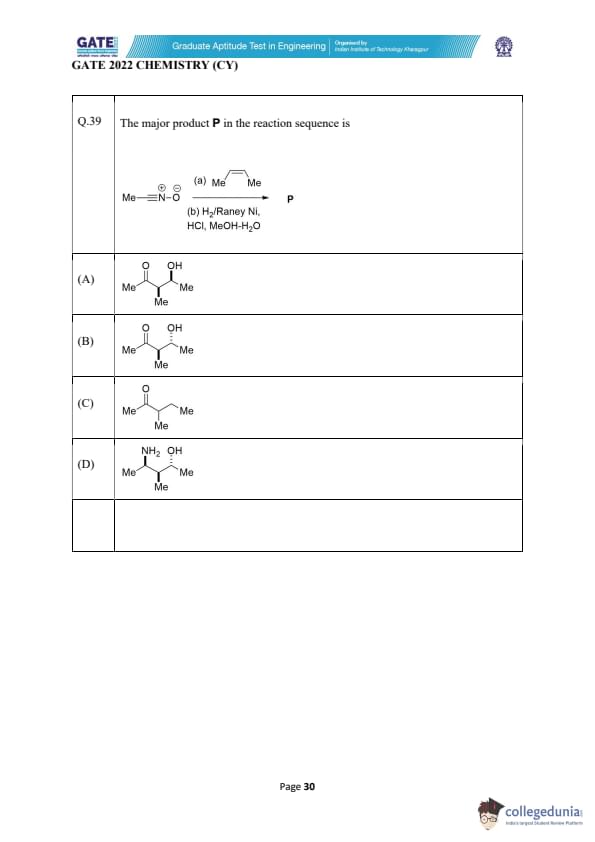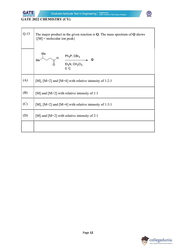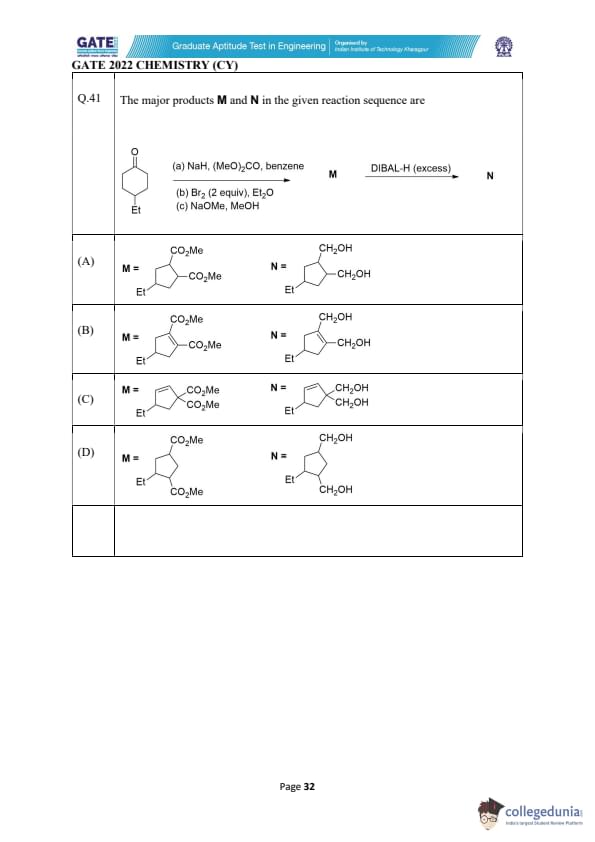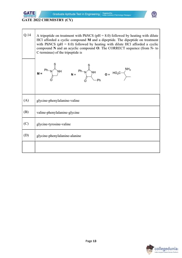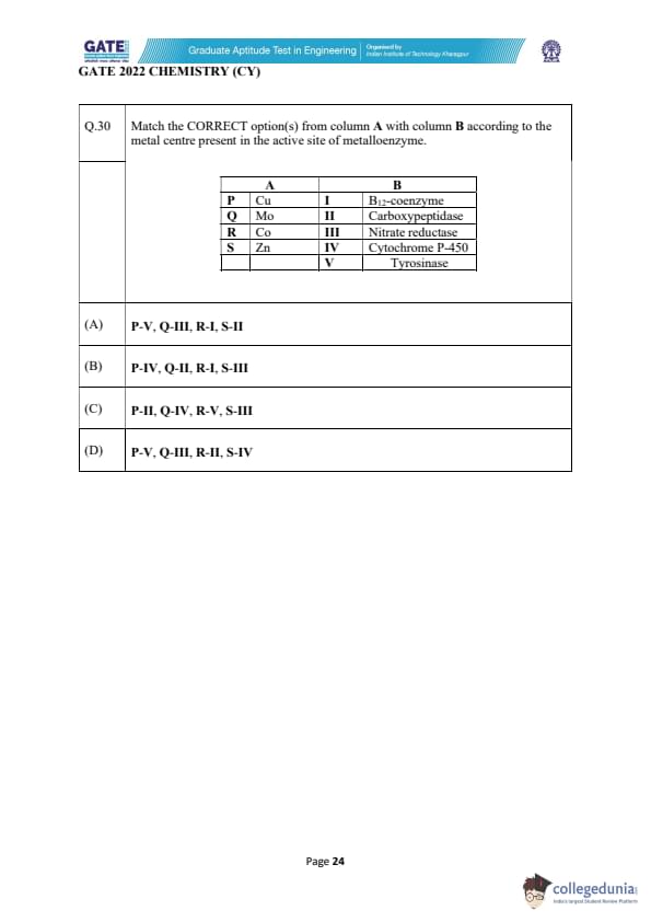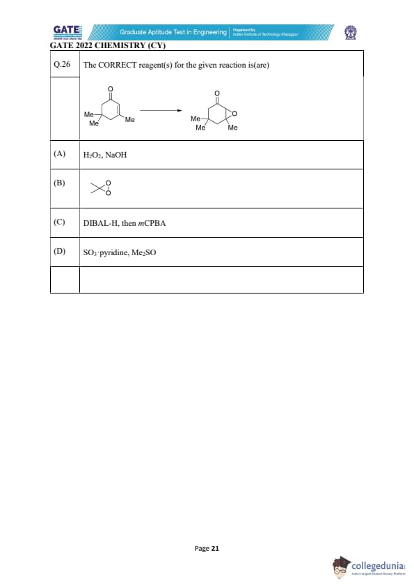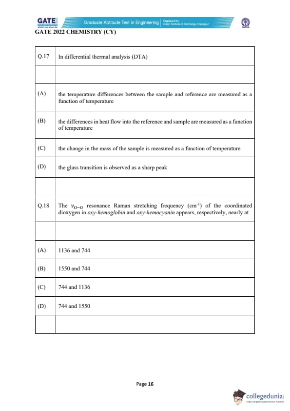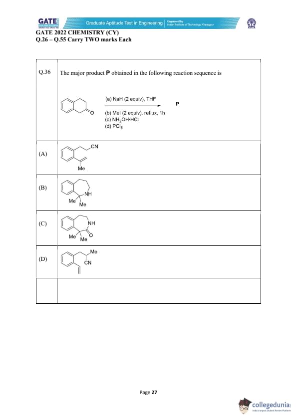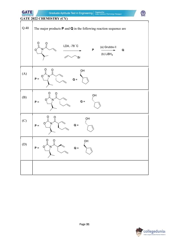 | GATE 2022 Chemistry (CY) Question Paper | Check Solutions |