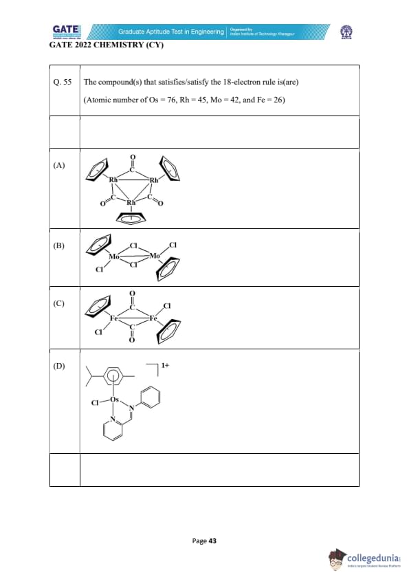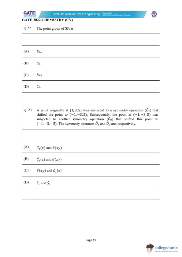 GATE 2022 Chemistry (CY) Question Paper with Solutions