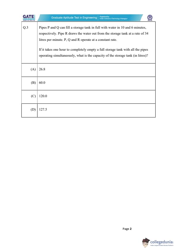 - Pipe R draws out water at a rate of 34 litres per minute.