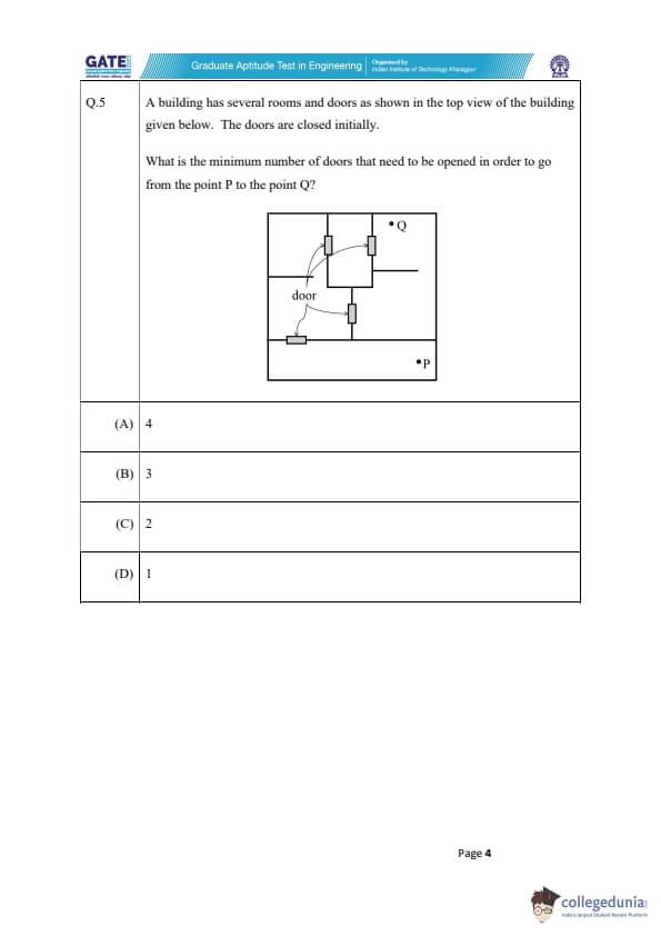 Quick Tip: In problems involving paths through buildings or networks, always look for the shortest route by considering the number of obstacles (like doors) that need to be overcome. Sometimes drawing the diagram helps in visualizing the best path.