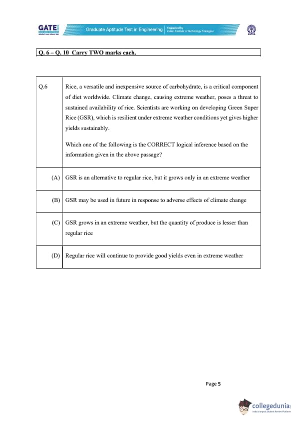 - Option (D): Regular rice will continue to provide good yields even in extreme weather.