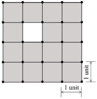 - A \(2 \times 2\) square can be formed by selecting four unit squares. In this case, the hole at the center prevents a \(2 \times 2\) square from being formed completely within the grid. Thus, we can form 5 such \(2 \times 2\) squares.