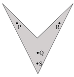An art gallery engages a security guard to ensure that the items displayed are protected. The diagram below represents the plan of the gallery where the boundary walls are opaque. The location the security guard posted is identified such that all the inner space (shaded region in the plan) of the gallery is within the line of sight of the security guard.
