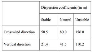 \[ \sigma_y = 80.0\ m, \qquad \sigma_z = 41.5\ m. \]