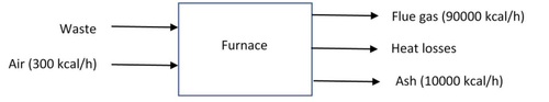 The figure shows heat inflow and outflow for a waste-to-energy plant furnace.