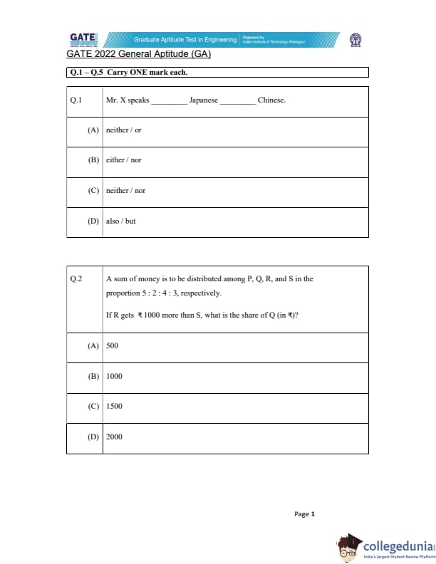 | GATE 2022 Question Papers | GATE 2021 Question Papers | GATE 2020 Question Papers |