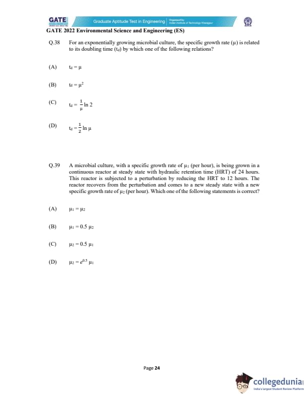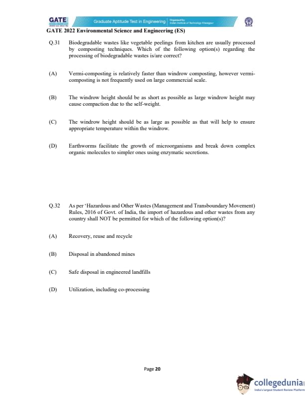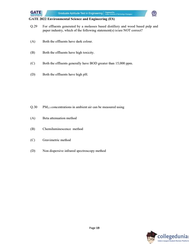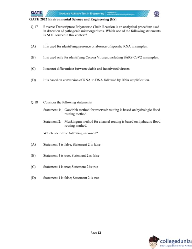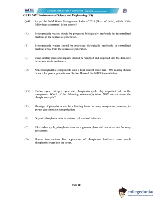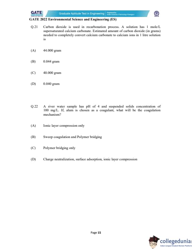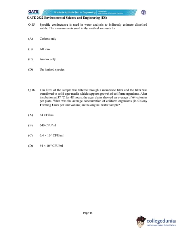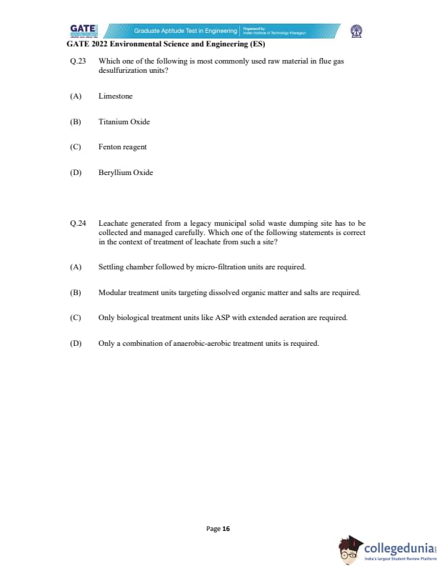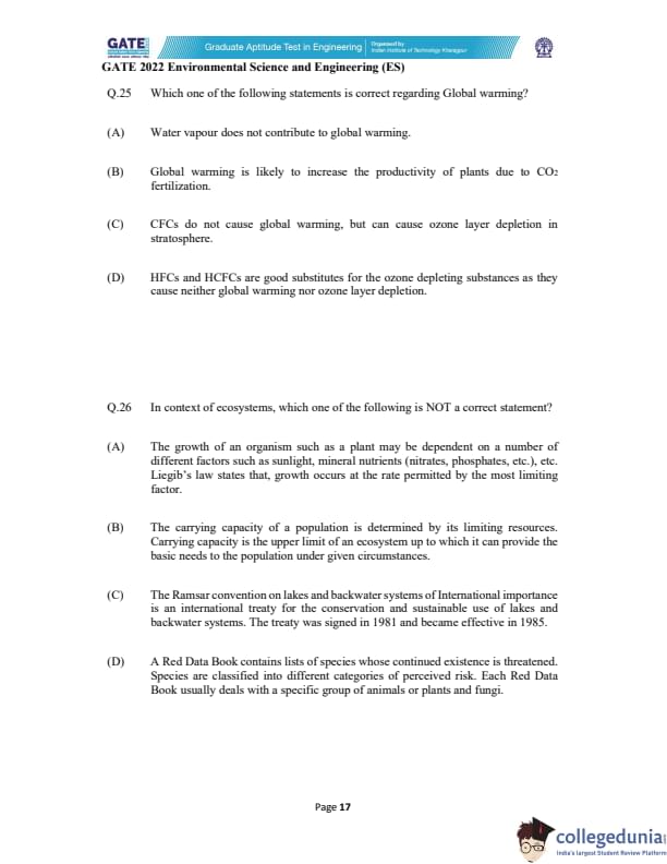 | GATE 2022 Environmental Science and Engineering (ES) Question Paper | Check Solutions |