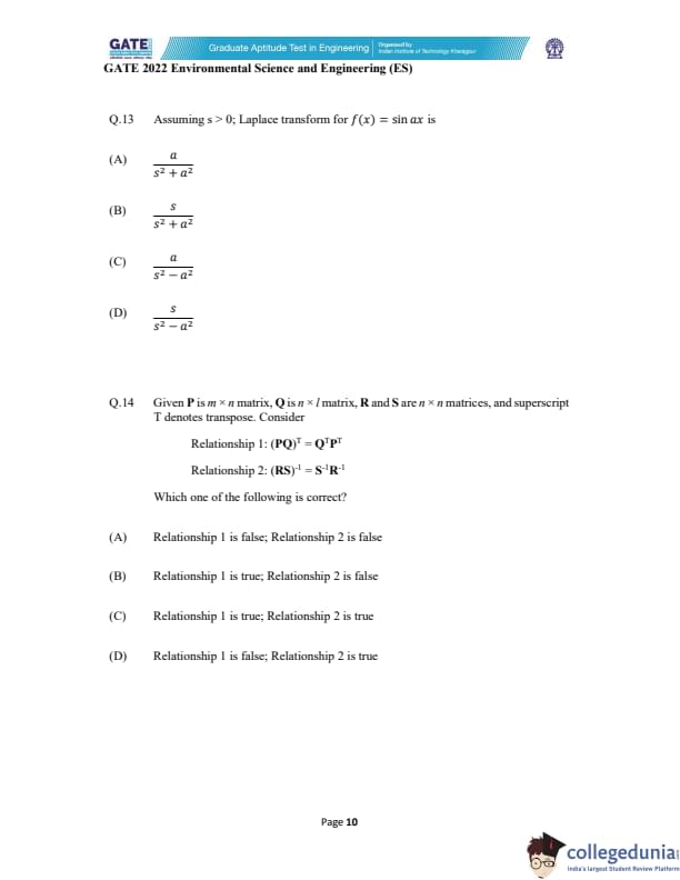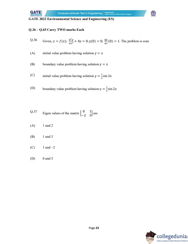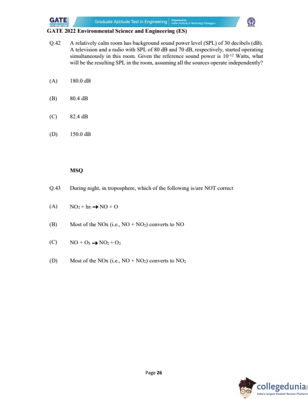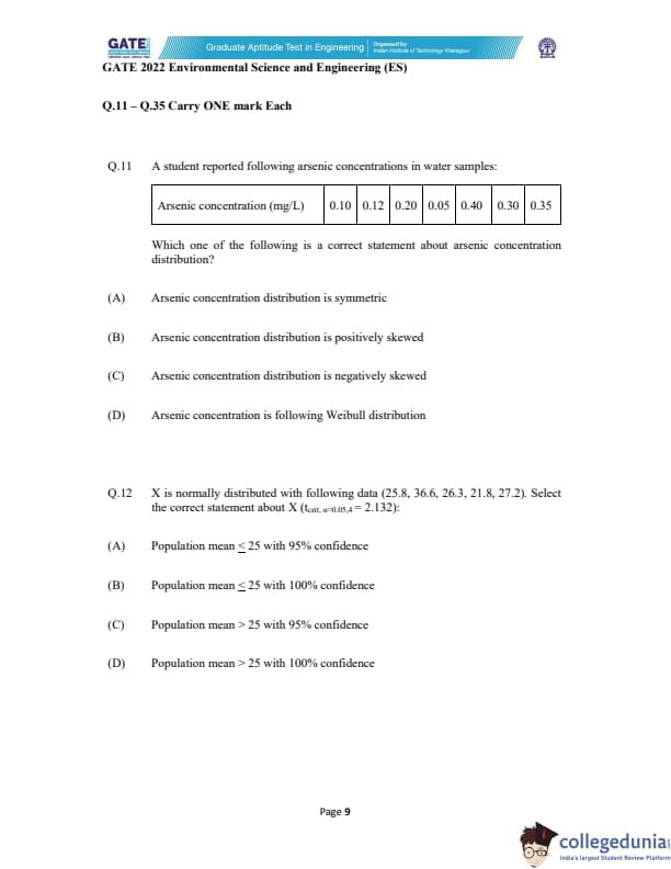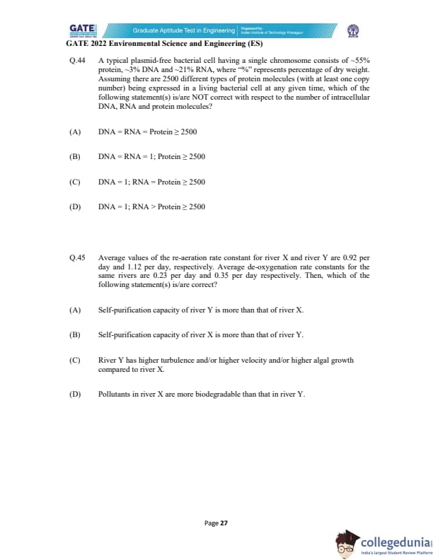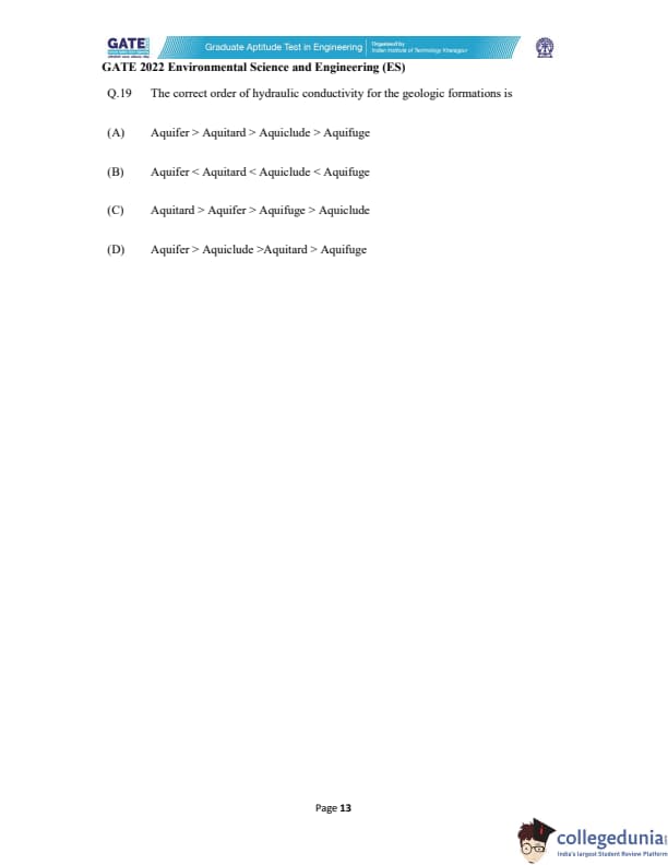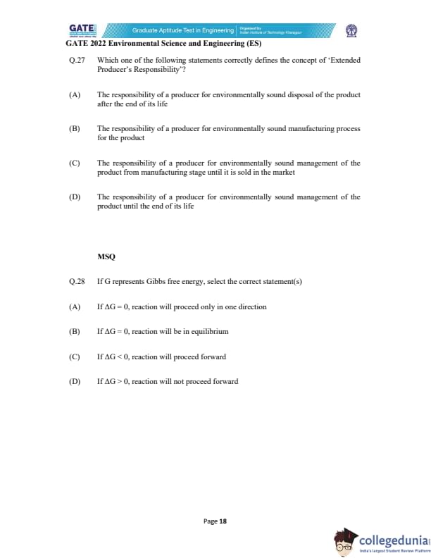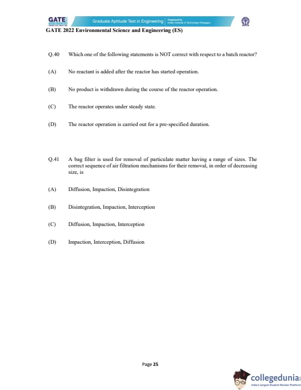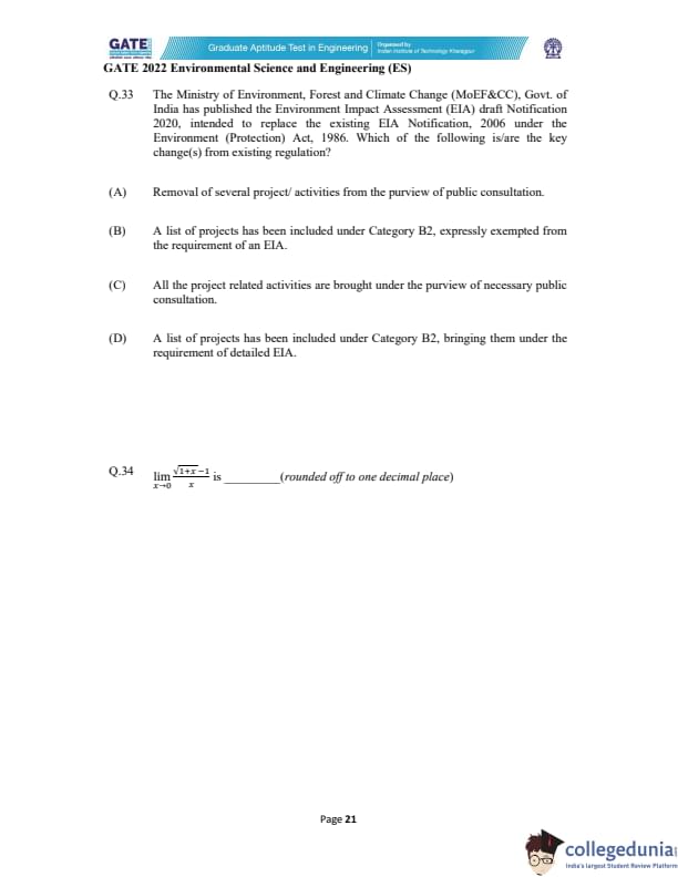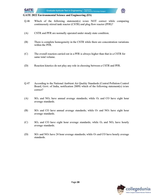 | GATE 2022 Environmental Science and Engineering (ES) Question Paper | Check Solutions |