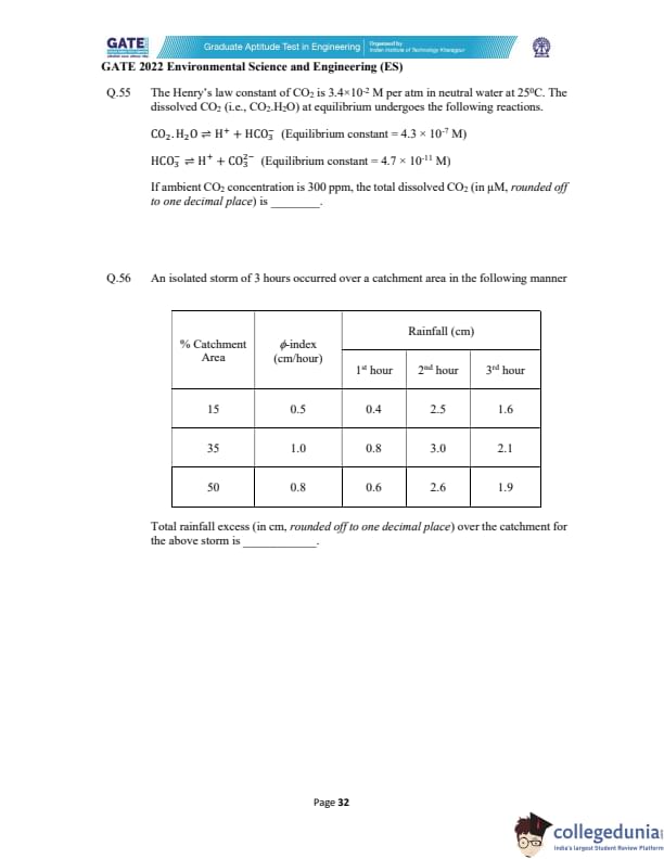 GATE 2022 Environmental Science and Engineering (ES) Question Paper with Solutions