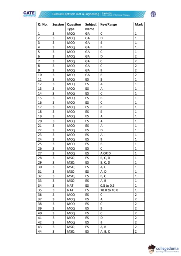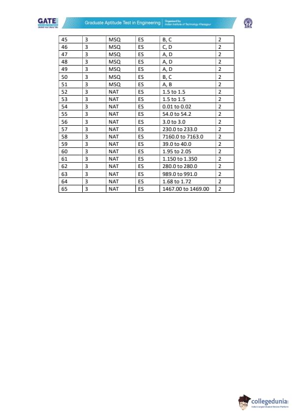 The appeared questions were in three forms i.e. MCQs (Multiple Choice Questions), NATs (Numerical Answer Type), and MSQs (Multiple Select Questions). More number of MSQs made the paper difficult to attemp. Candidates can go through the below-mentioned table to see the total number of MCQs, MSQs and NATs in GATE 2022 ES Question Paper-
