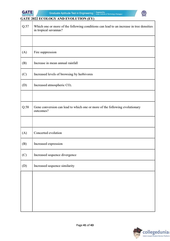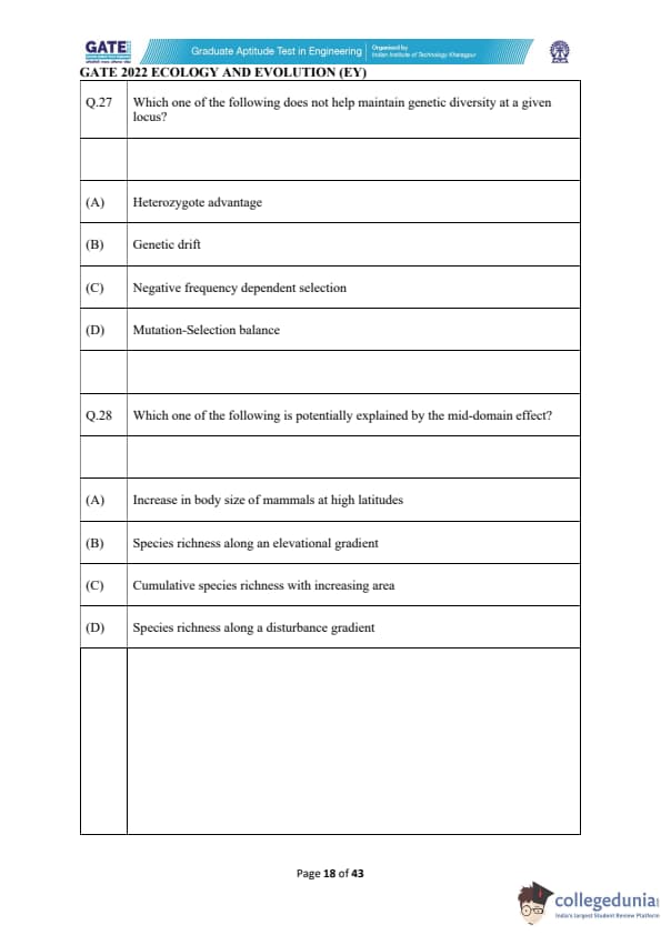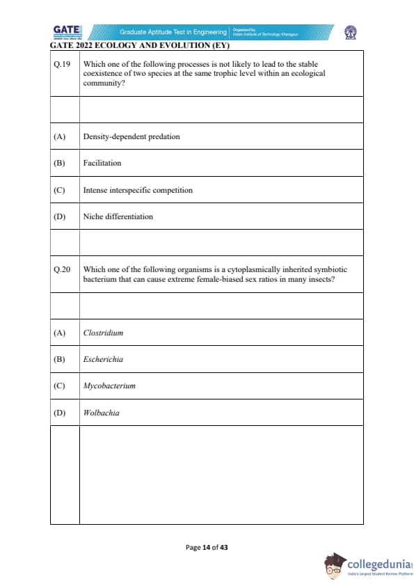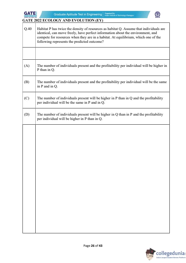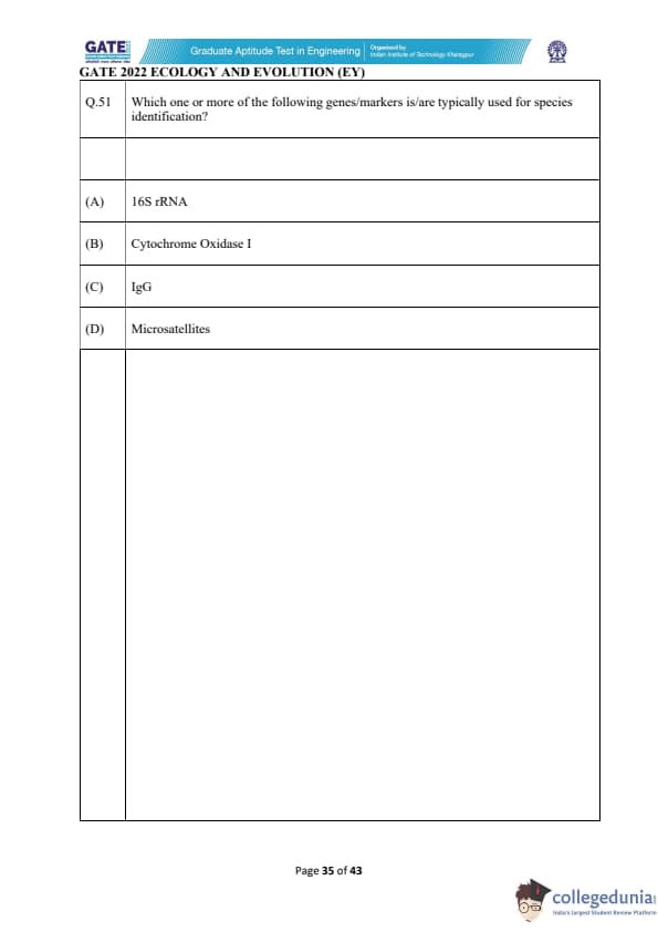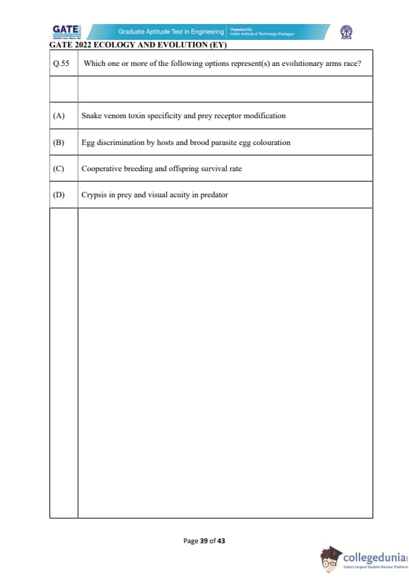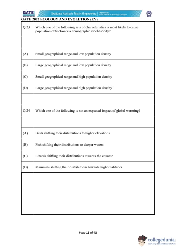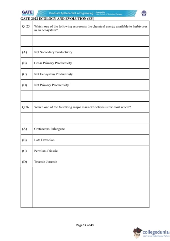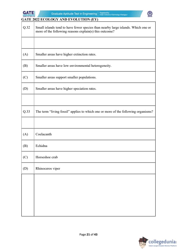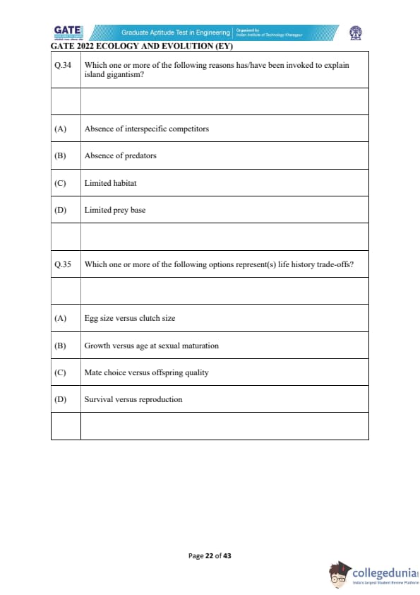 GATE 2022 Ecology and Evolution (EY) Question Paper with Solutions