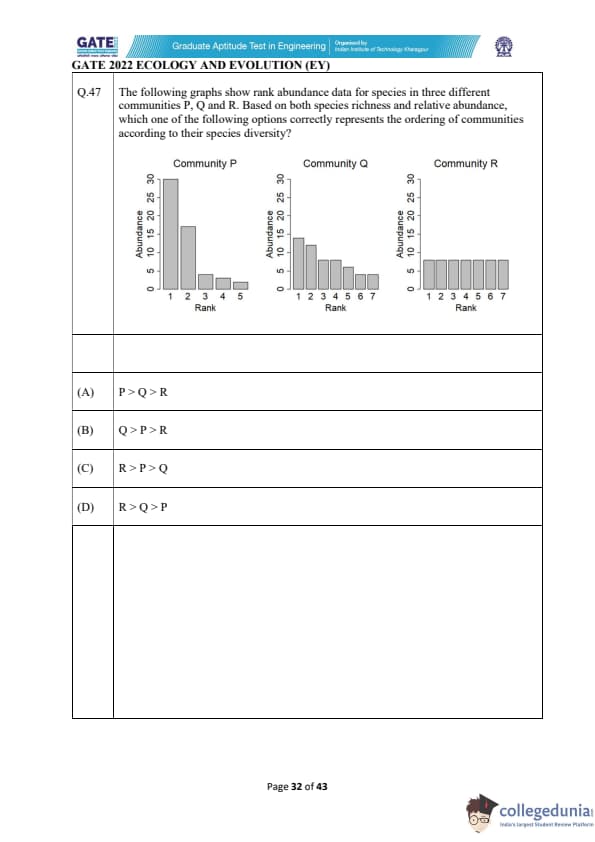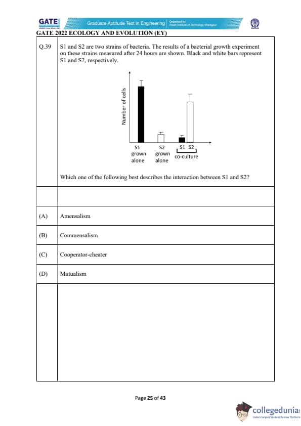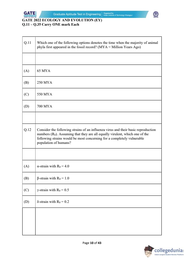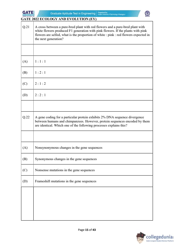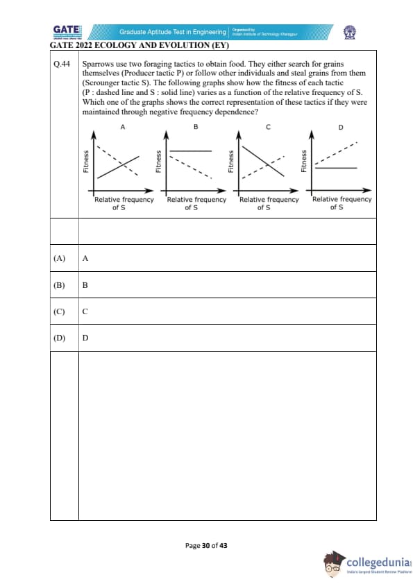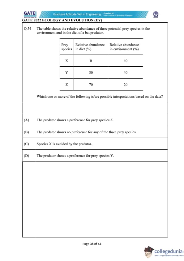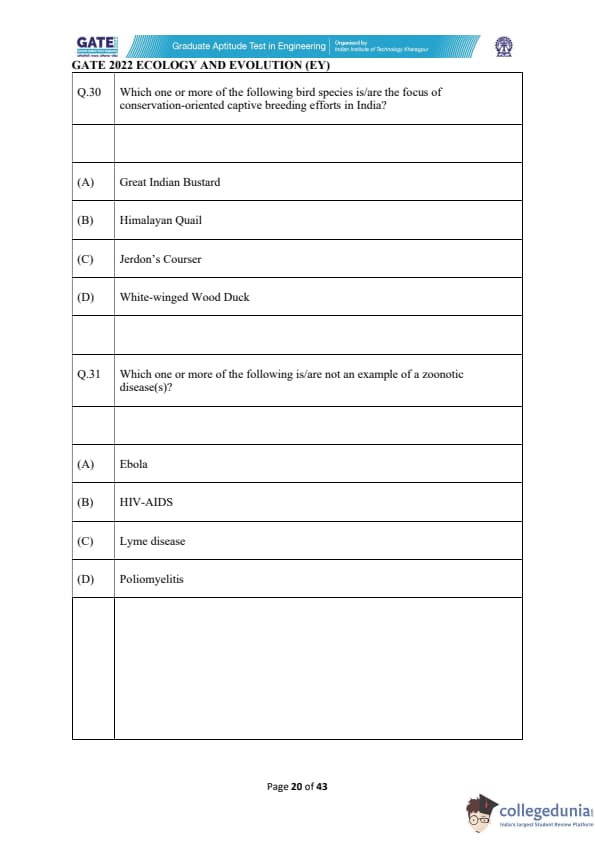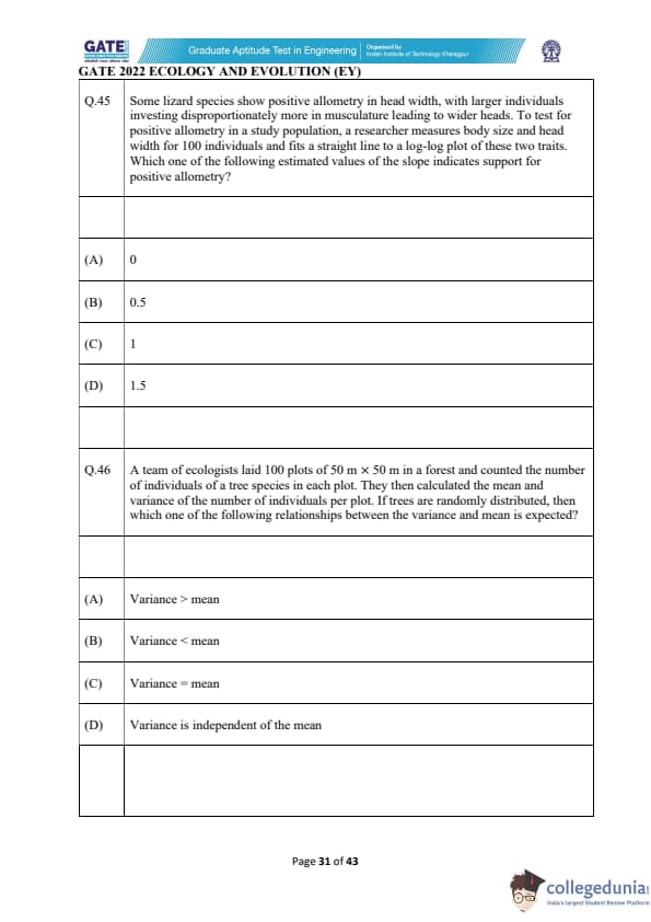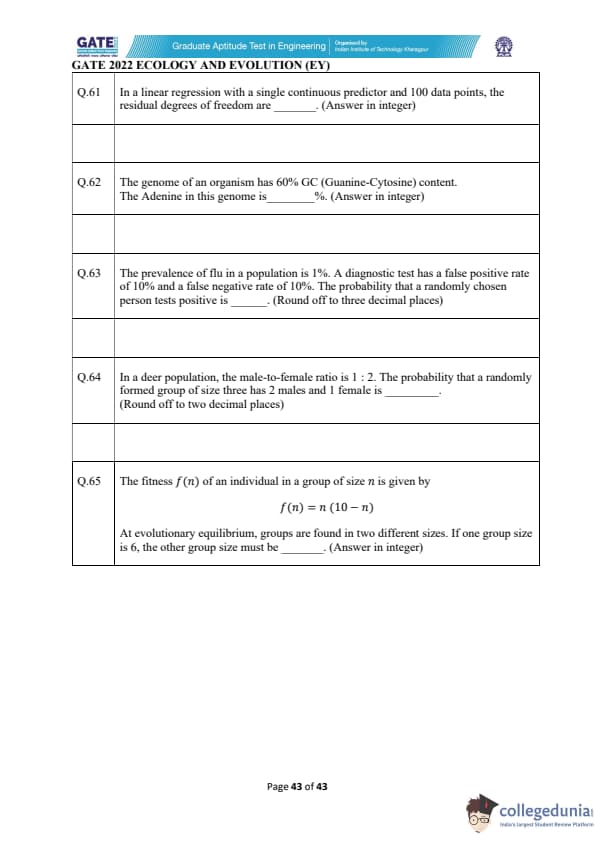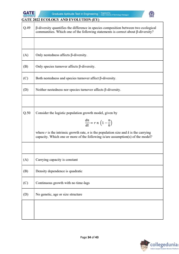 GATE 2022 Ecology and Evolution (EY) Question Paper with Solutions