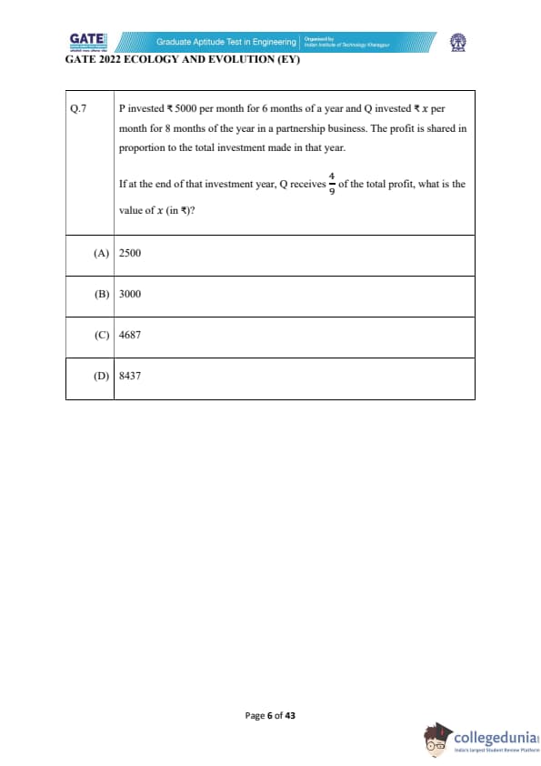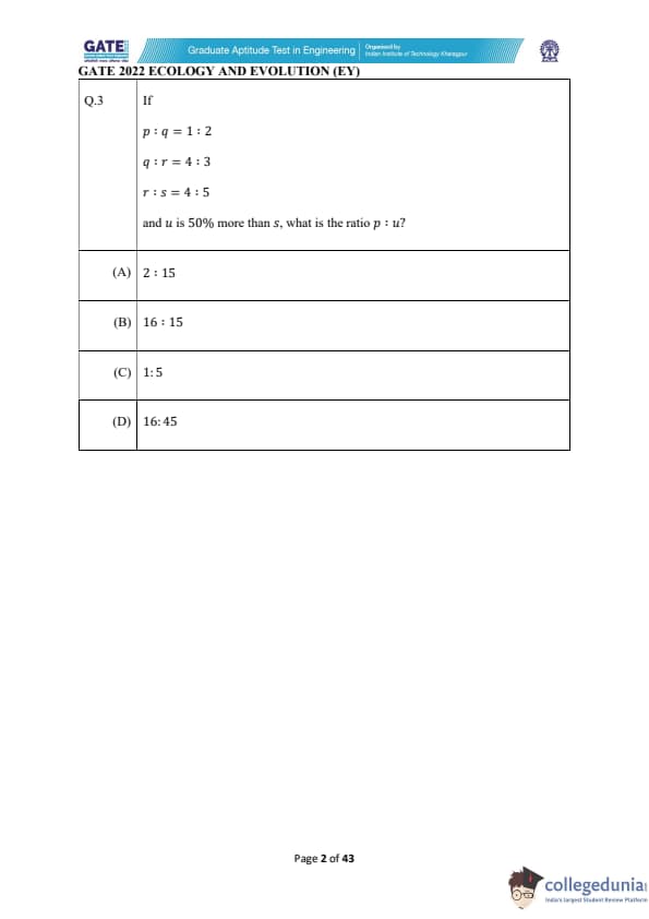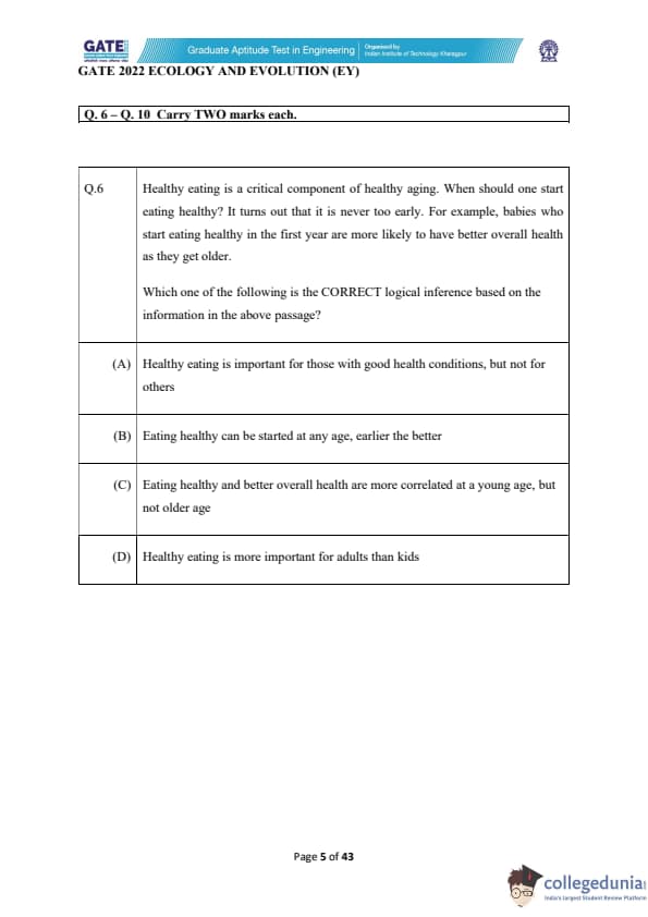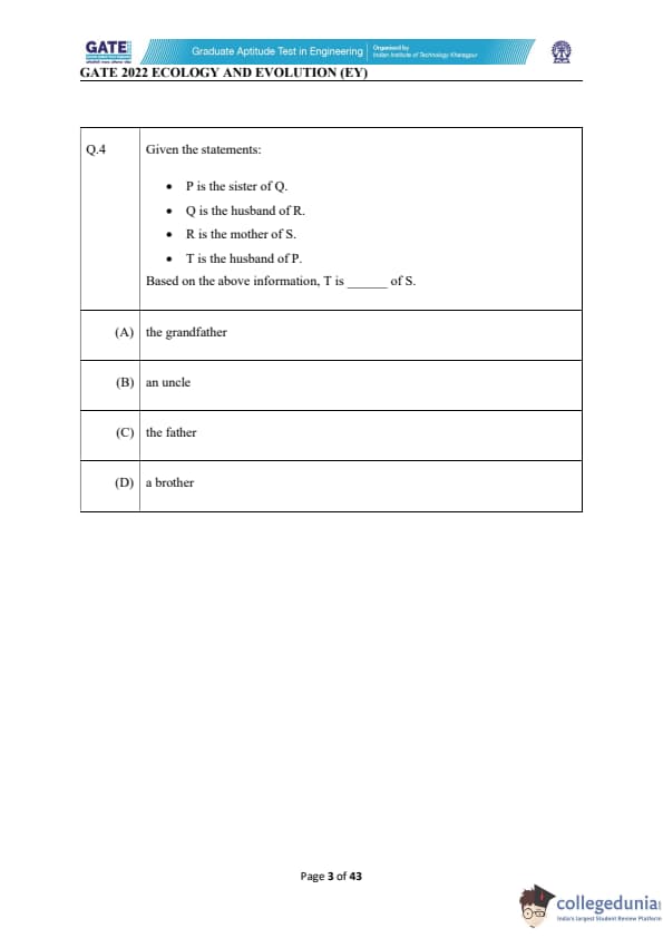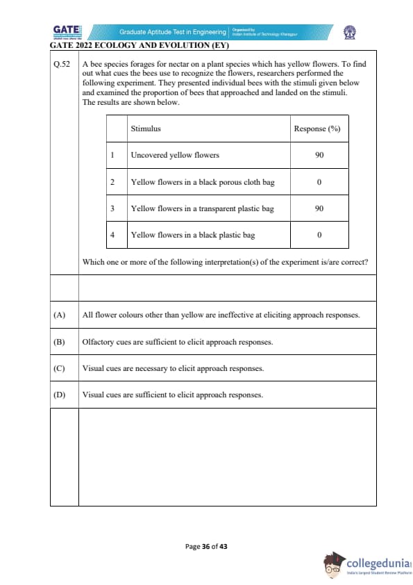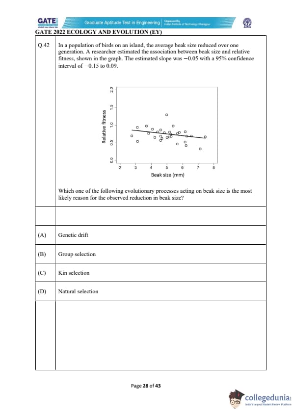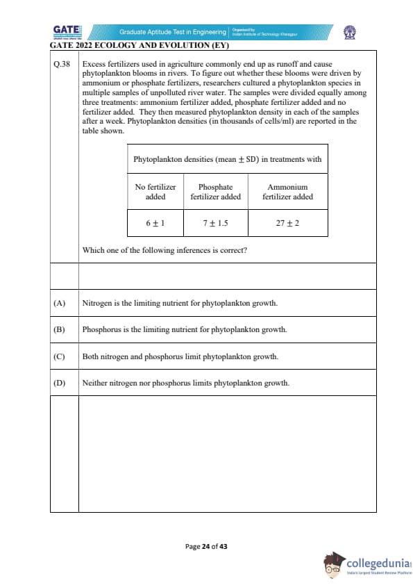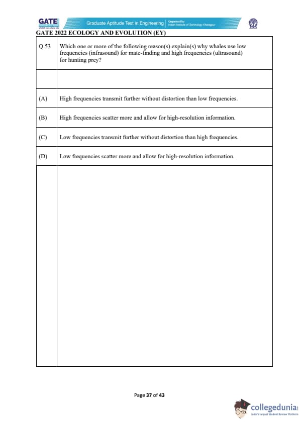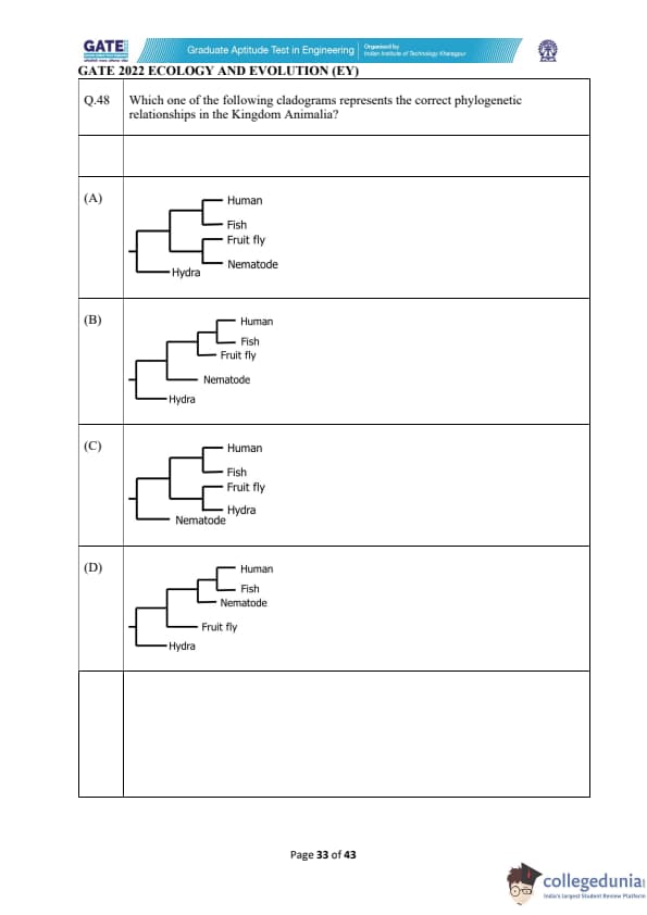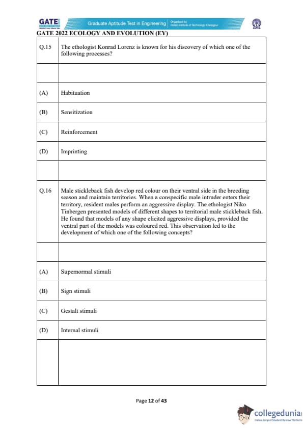 GATE 2022 Ecology and Evolution (EY) Question Paper with Solutions