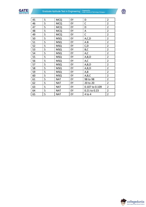 - There were only 5 NAT questions, each carrying 2 marks, appeared in GATE 2022 EY