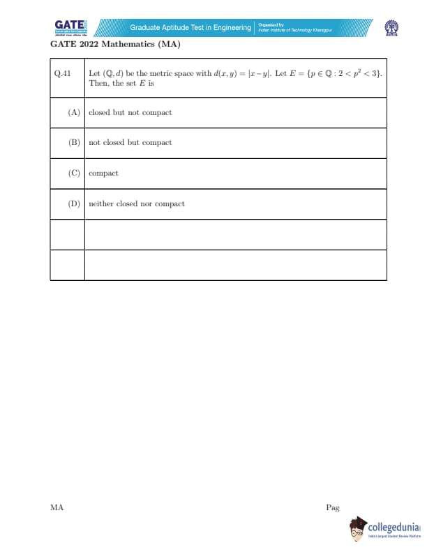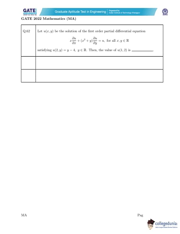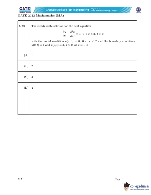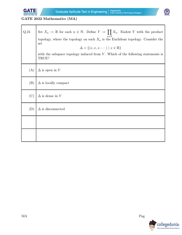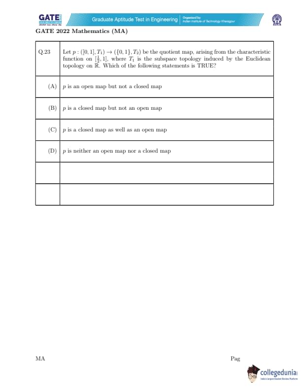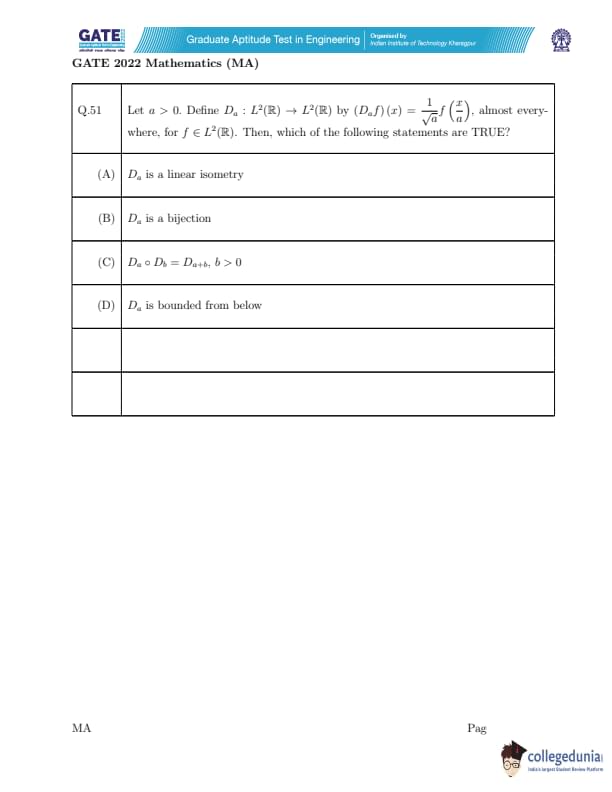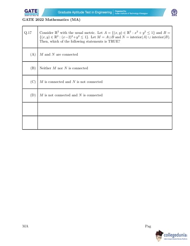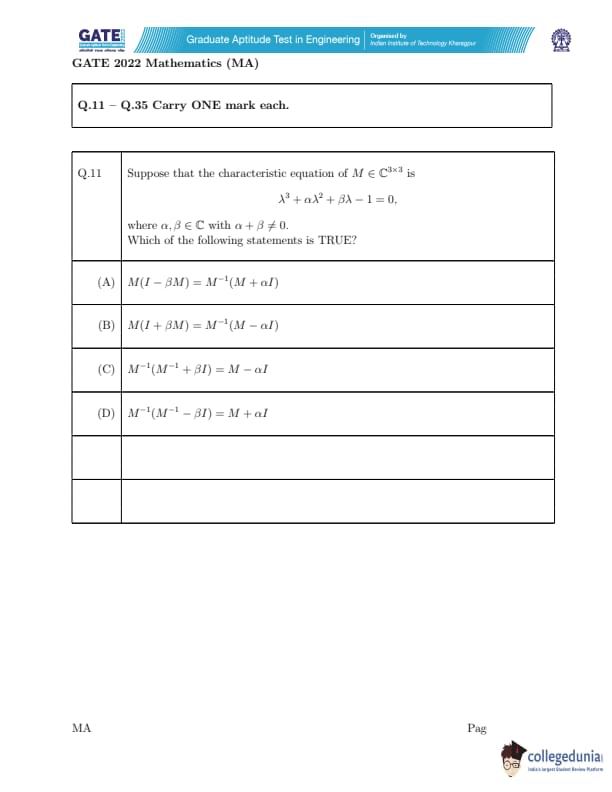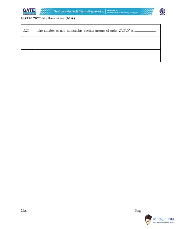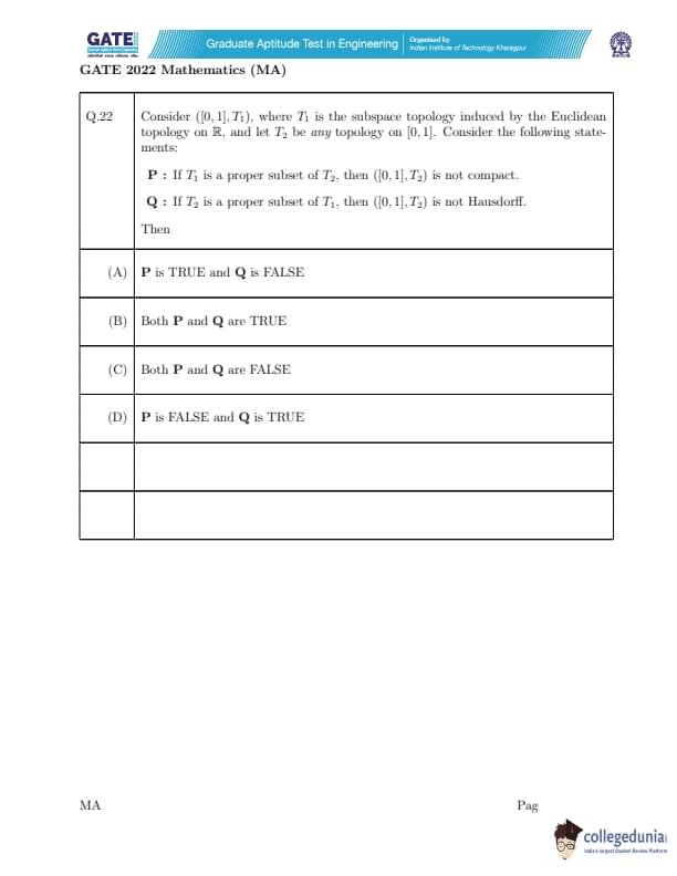 | GATE 2022 Mathematics (MA) Question Paper | Check Solutions |