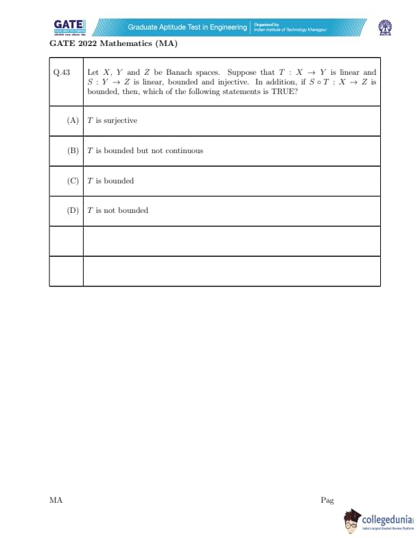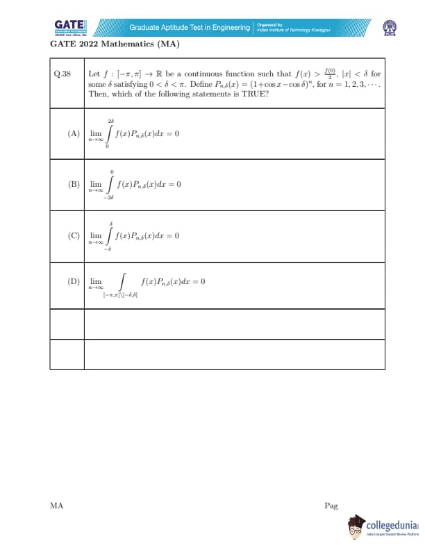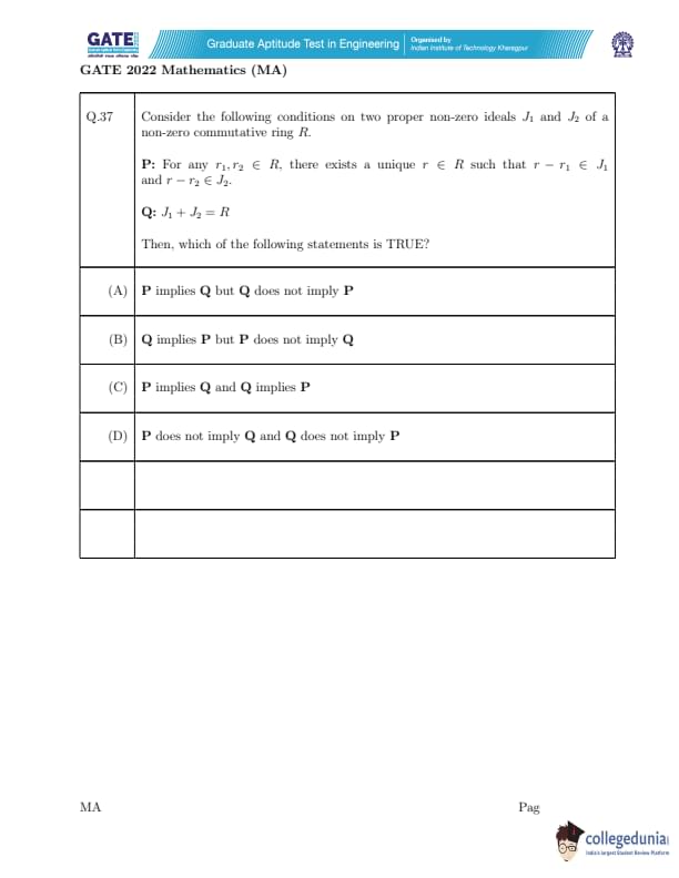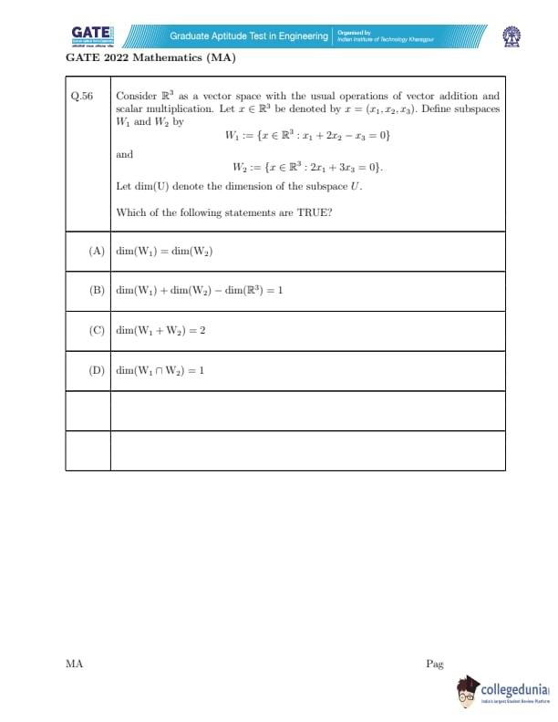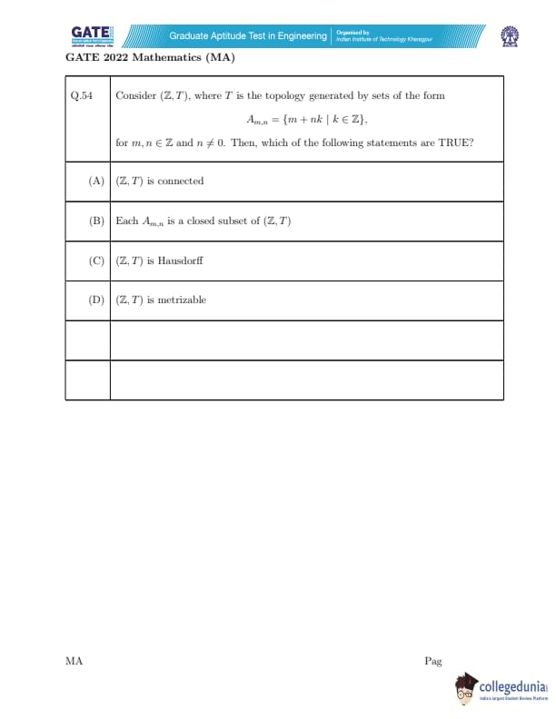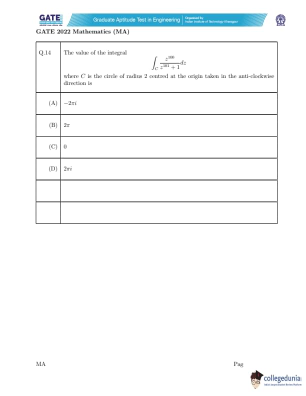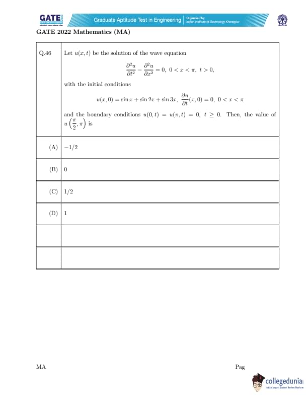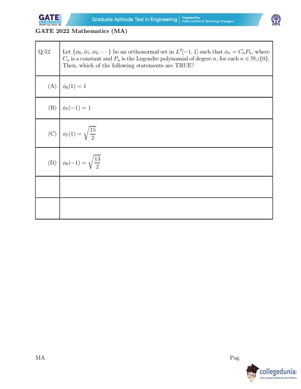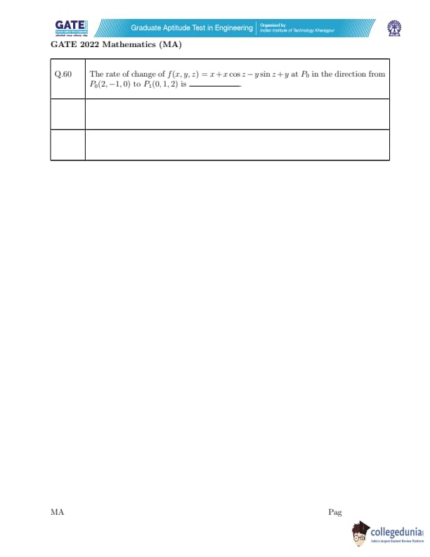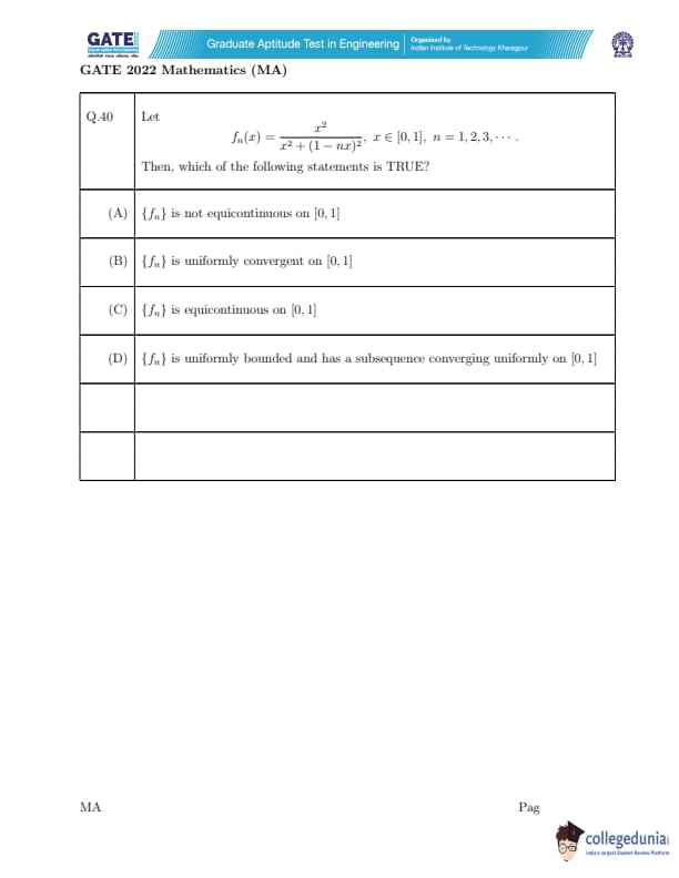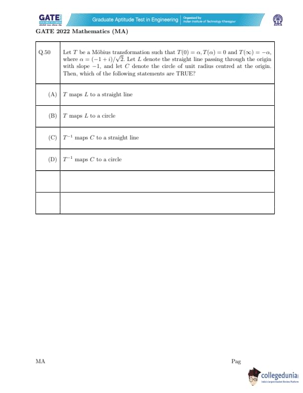 | GATE 2022 Mathematics (MA) Question Paper | Check Solutions |