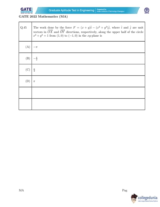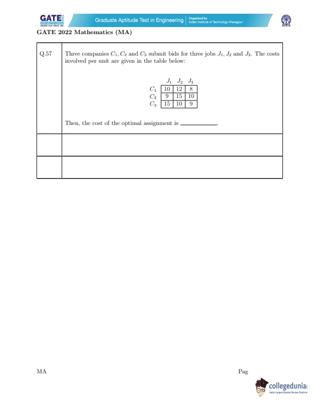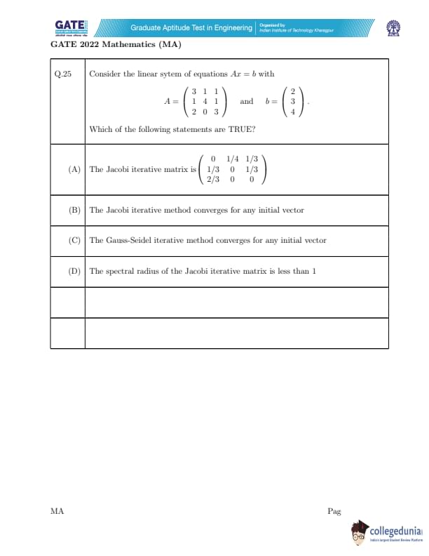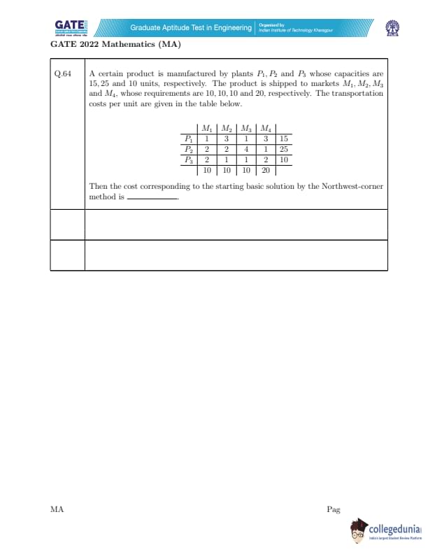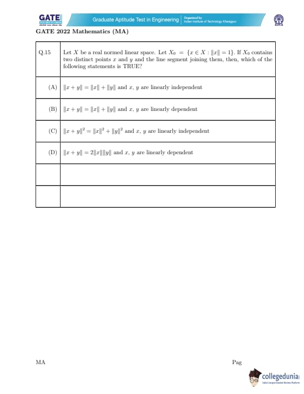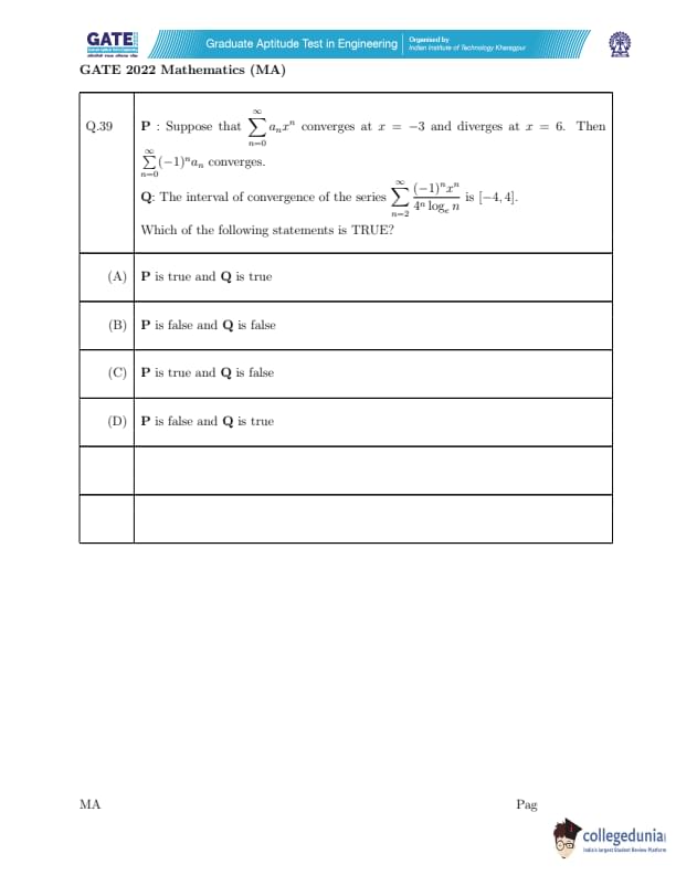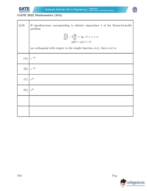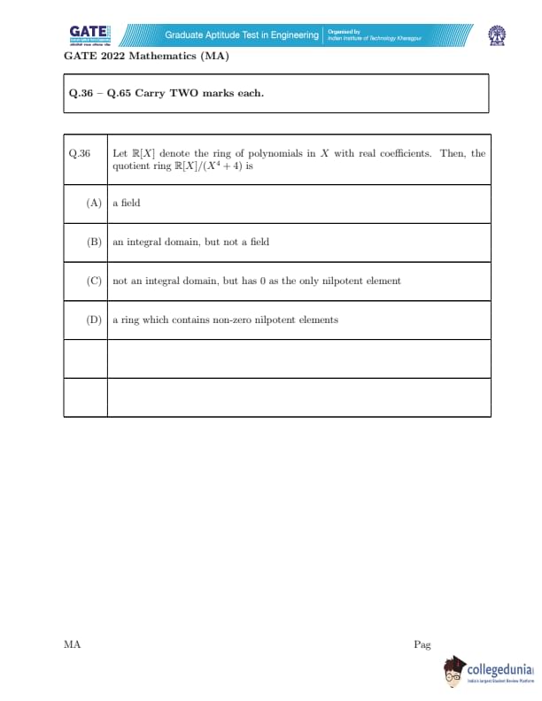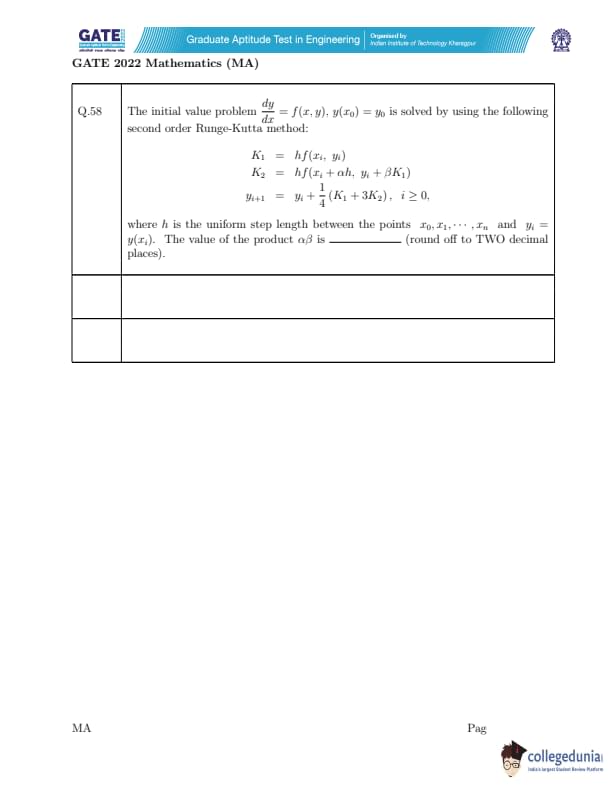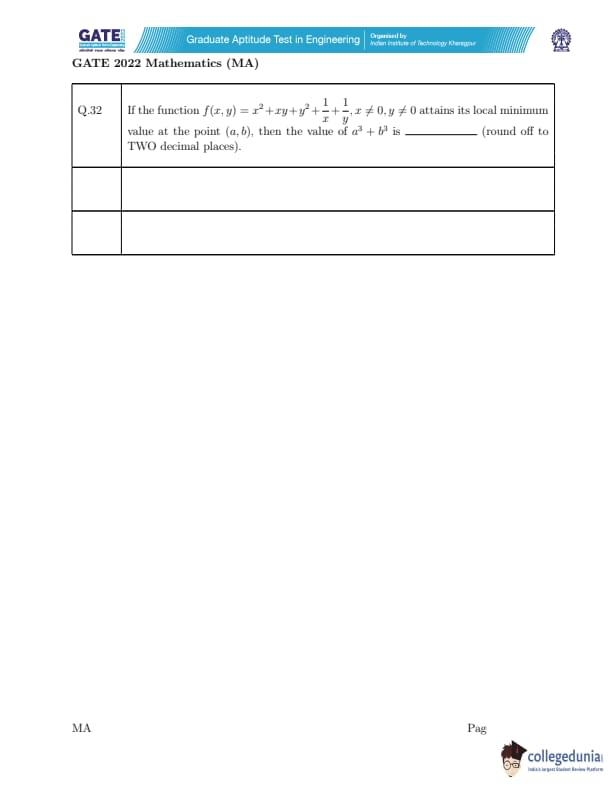 | GATE 2022 Mathematics (MA) Question Paper | Check Solutions |