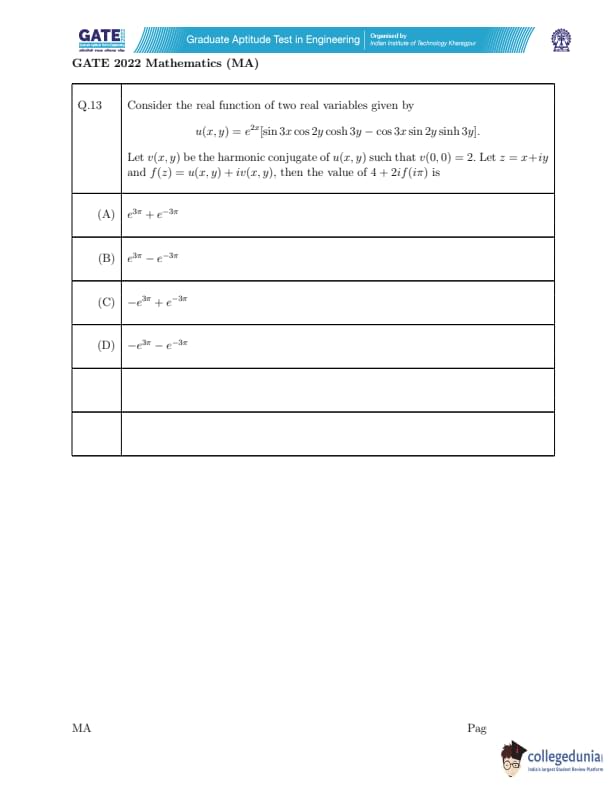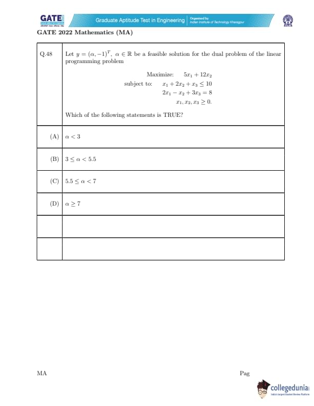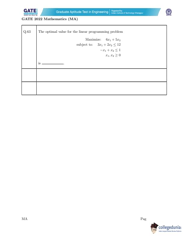 GATE 2022 Mathematics (MA) Question Paper with Solutions