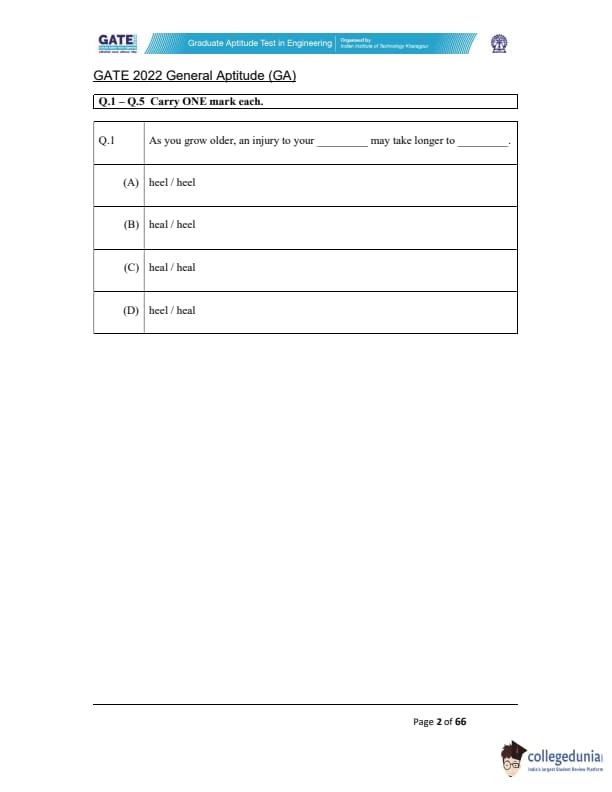 Thus, the correct answer is (D) heel / heal. Quick Tip: Remember the difference between "heel" (body part) and "heal" (recover or mend).