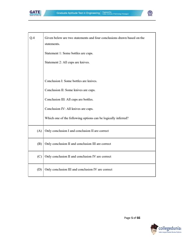 - Conclusion IV: "All knives are cups." This is also incorrect. The statement only tells us that all cups are knives, but it doesn't say all knives are cups.