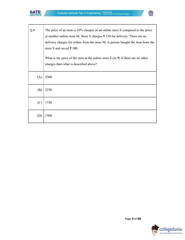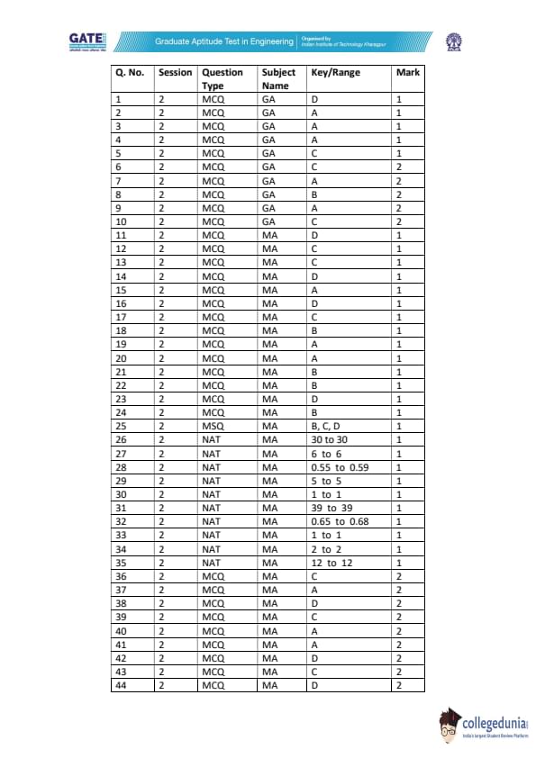 - There were a total of 9 MSQs (Multiple Select Questions) in the exam. 8 MSQs carried 2 marks, while only 1 MSQ carried 1 mark